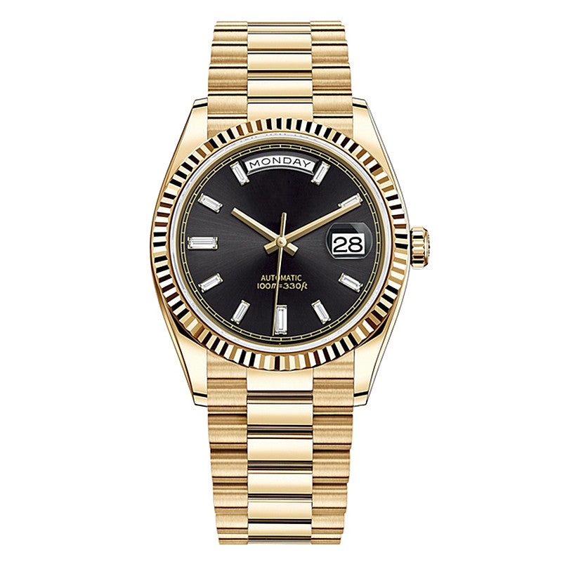 Introducing the 36mm Men's Automatic Mechanical Watch Sunday, a perfect blend of style and functionality. This round-shaped timepiece boasts a mechanical movement-automatic mechanical movement, ensuring accurate timekeeping and a seamless user experience. With additional features like a calendar, luminous week display, and a stainless steel strap, this watch is designed to meet the demands of modern men.