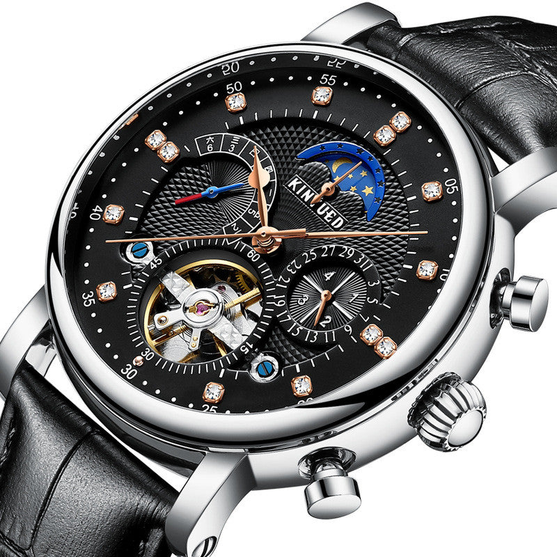 Automatic Fashion Leather Diamond Star Men's Tourbillon Hollow Mechanical Watch