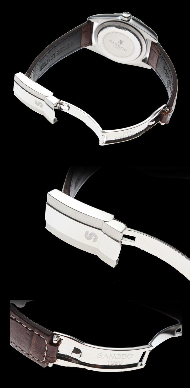 Crafted with a leather strap, this watch offers a comfortable and stylish fit. The strap material ensures durability, making it suitable for everyday wear. The single folding buckle adds convenience and security to the overall design.