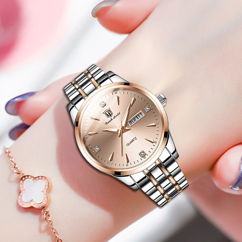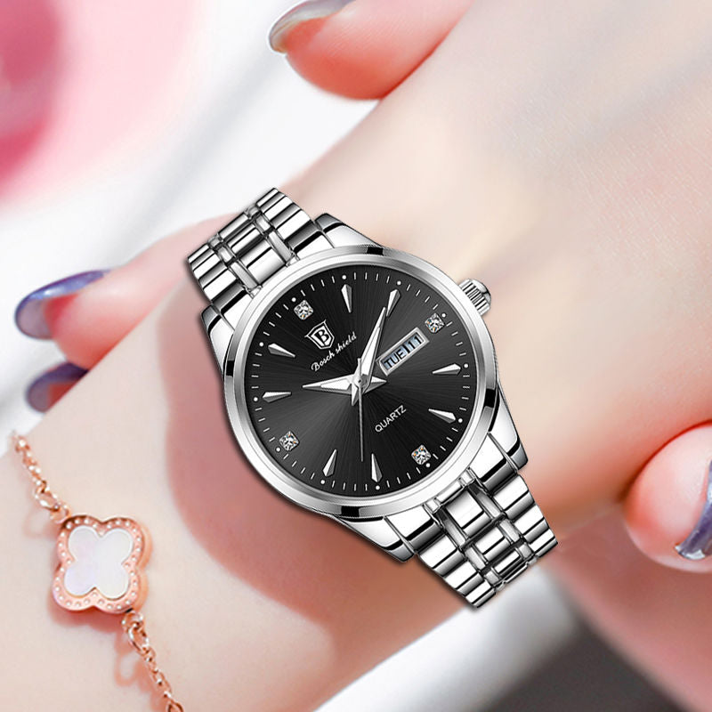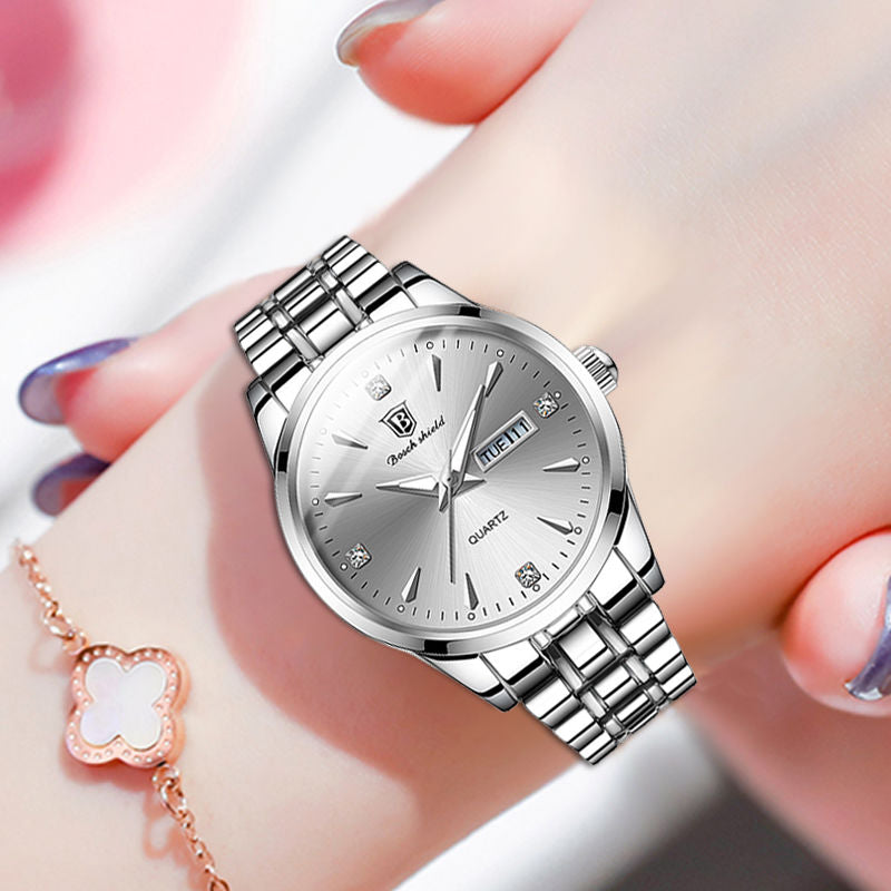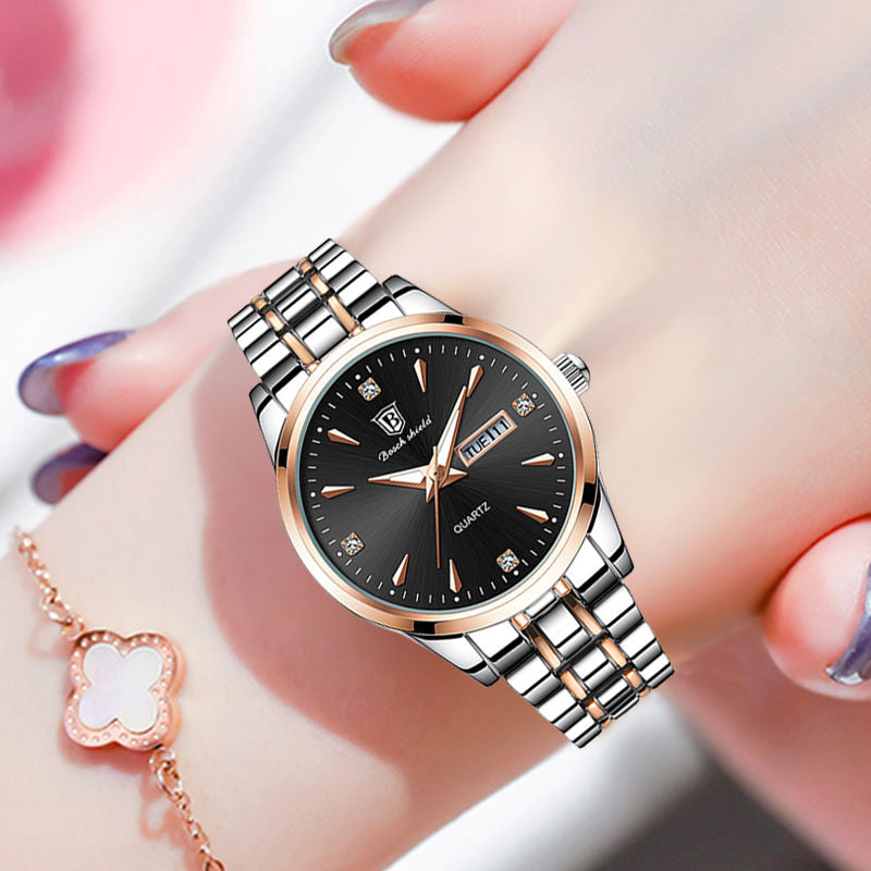 No need to worry about water damage, as this watch has a waterproof depth of 3ATM. It can withstand splashes, rain, and even brief immersion in water, making it suitable for everyday wear and outdoor activities. The watch mirror material is made of plastic, providing a clear and durable surface that protects the dial from scratches and impacts.