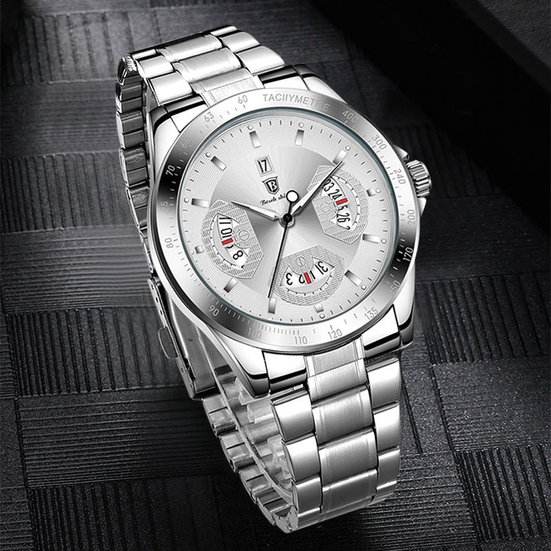 The display mode of this watch is in a classic pointer style, offering a timeless appeal. With its masculine design, this watch is tailored specifically for men, making it an ideal accessory for any occasion. Whether you're attending a formal event or going about your daily routine, this watch effortlessly complements your style.
