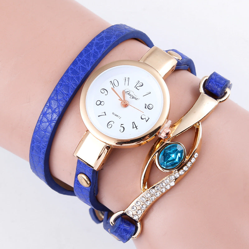Blue crystal long bracelet watch quartz watch