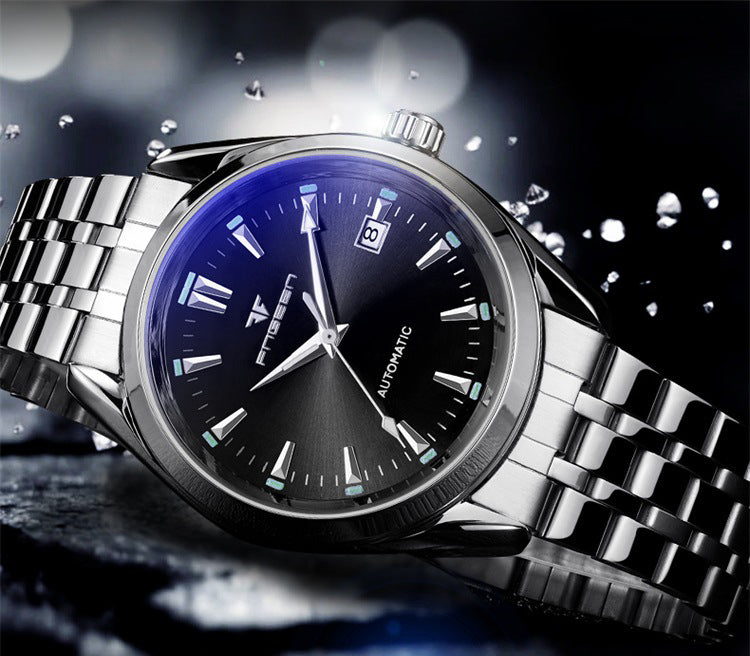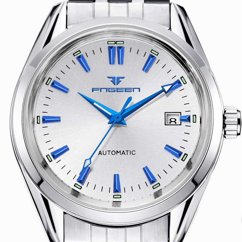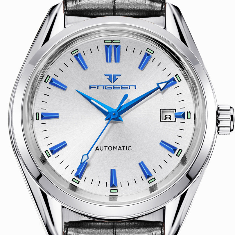 Introducing the Blue Nail Automatic Skeleton Mechanical Watch, a stunning timepiece that combines elegance and functionality. With a dial diameter of 41mm and a thickness of 15mm, this watch is the perfect size to make a statement on your wrist without being overwhelming. The spiral crown adds a touch of sophistication, while the through bottom table bottom type allows you to admire the intricate inner workings of the watch.