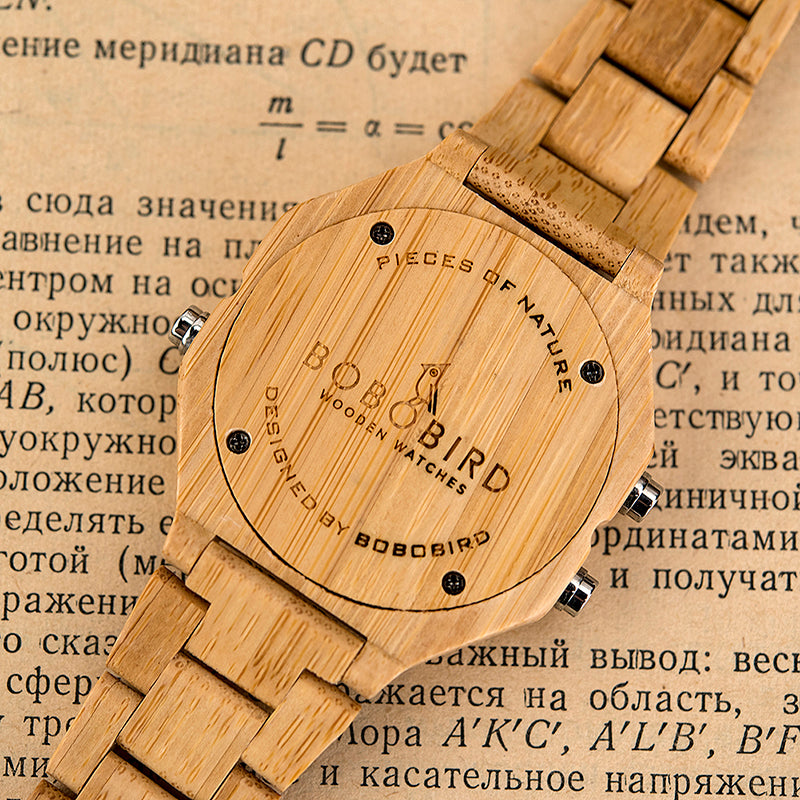 In summary, the Bobo Bird Men's Bamboo Digital Wrist Watch with Night Vision LCD Unique Display is a stylish and functional accessory for the modern man. Its unique design, waterproof feature, and night vision display make it a versatile and reliable choice for any occasion. Whether you're heading to the office or going for a night out, this watch is sure to impress.