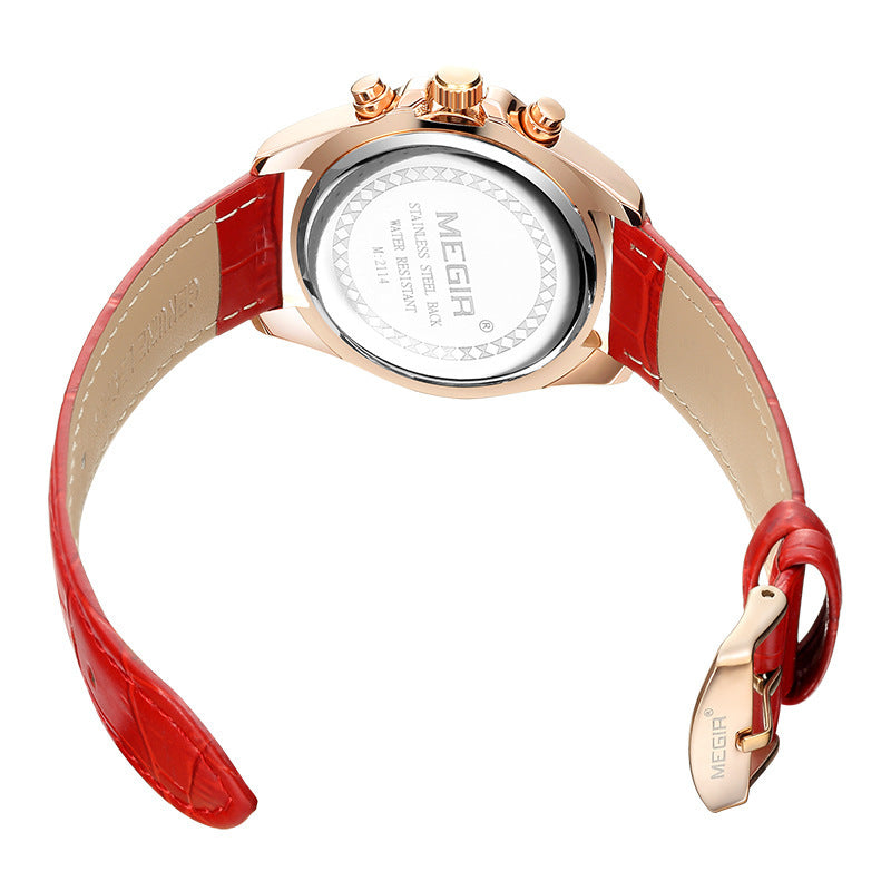 In conclusion, our brand multi-function chronograph leather quartz watch, model 2114, offers a fashionable and practical accessory for women. With its decorative features, calendar function, and small three needles, it is both stylish and functional. The waterproof performance, quartz movement, and high-quality materials used in its construction ensure durability and reliability. Upgrade your fashion game with this elegant and versatile timepiece.