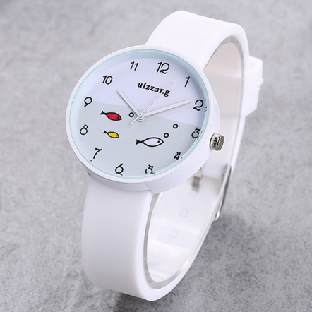 Introducing our Children Watch For Girls - a vibrant and stylish timepiece designed to captivate the hearts of young fashion enthusiasts. This delightful wristwatch boasts a color silicone strap that adds a playful touch to any outfit. With its fish dial featuring a charming cartoon design, this watch is sure to become a favorite accessory among kids.