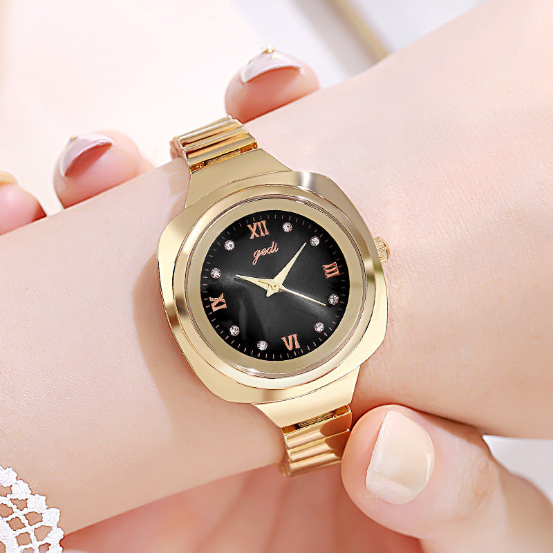 Crafted with precision, the case material is made of alloy, ensuring durability and longevity. The mirror material is hardened glass, providing scratch resistance and clarity. The clasp style is a jewelry clasp, allowing for easy and secure fastening. The buckle material is stainless steel, adding a touch of sophistication to the design.