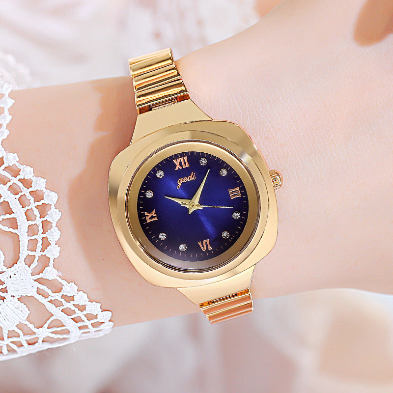 The strap material is a steel strap, combining durability with a stylish appearance. The square dial shape adds a modern twist to the classic design, making this watch a fashion statement. Whether you're dressed up for a special occasion or keeping it casual, this watch will complement your style effortlessly.