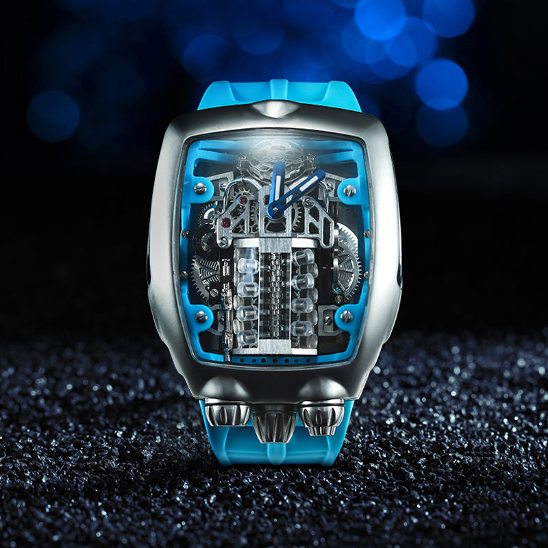 Introducing the Cylinder Engine Multi-function Watch for Men, a sleek and stylish timepiece designed to elevate your wrist game. Powered by a reliable mechanical movement with automatic capabilities, this watch ensures precision and accuracy in timekeeping.