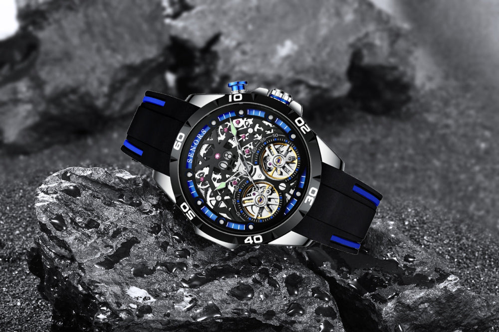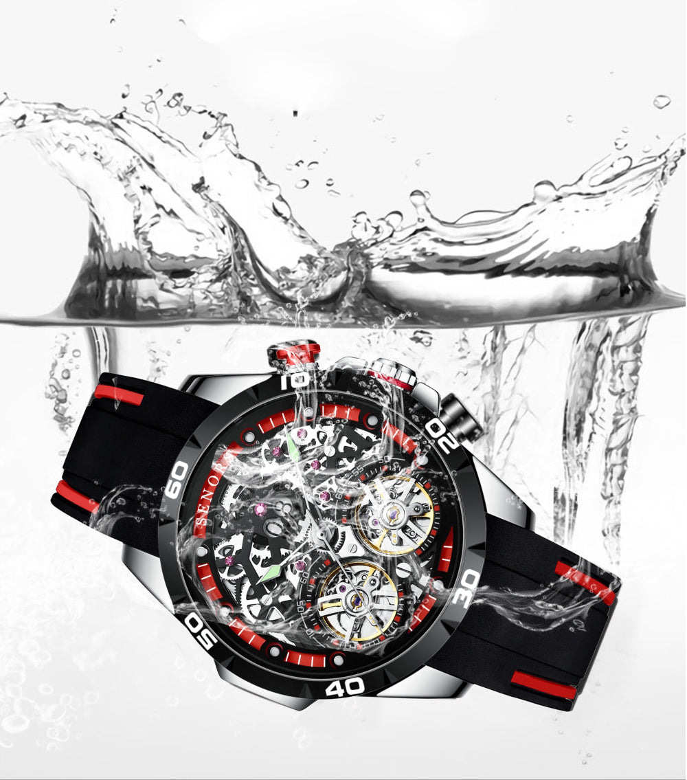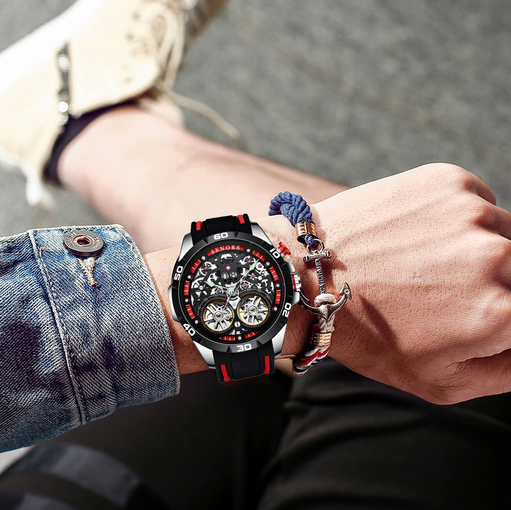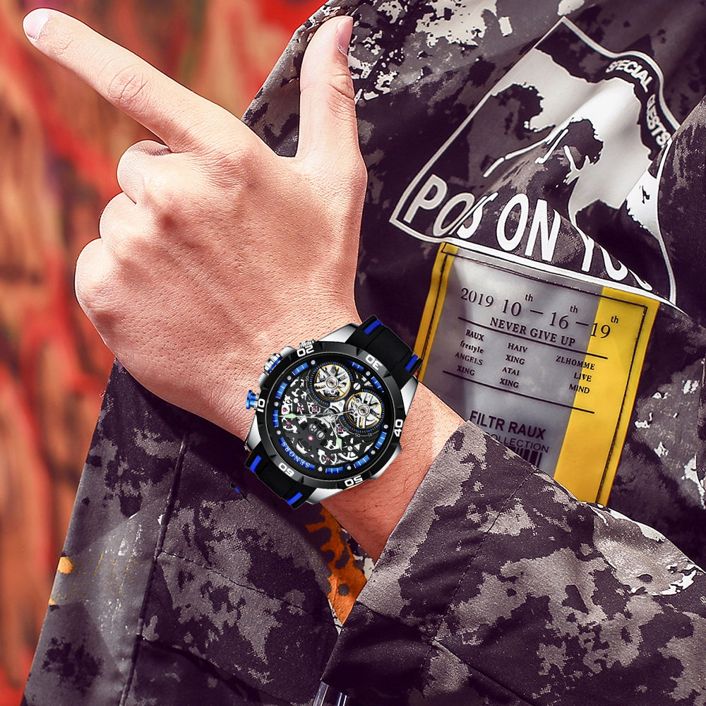 Double tourbillon mechanical skeleton watch