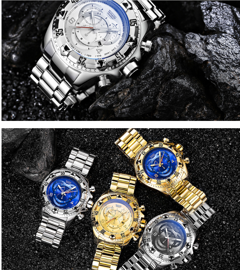 Shop the latest explosion models of men's fake three-eye luminous large watches at our website. These stunning timepieces are designed for the modern man who appreciates style and functionality. With their eye-catching design and luminous features, these watches are sure to make a statement wherever you go.