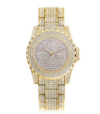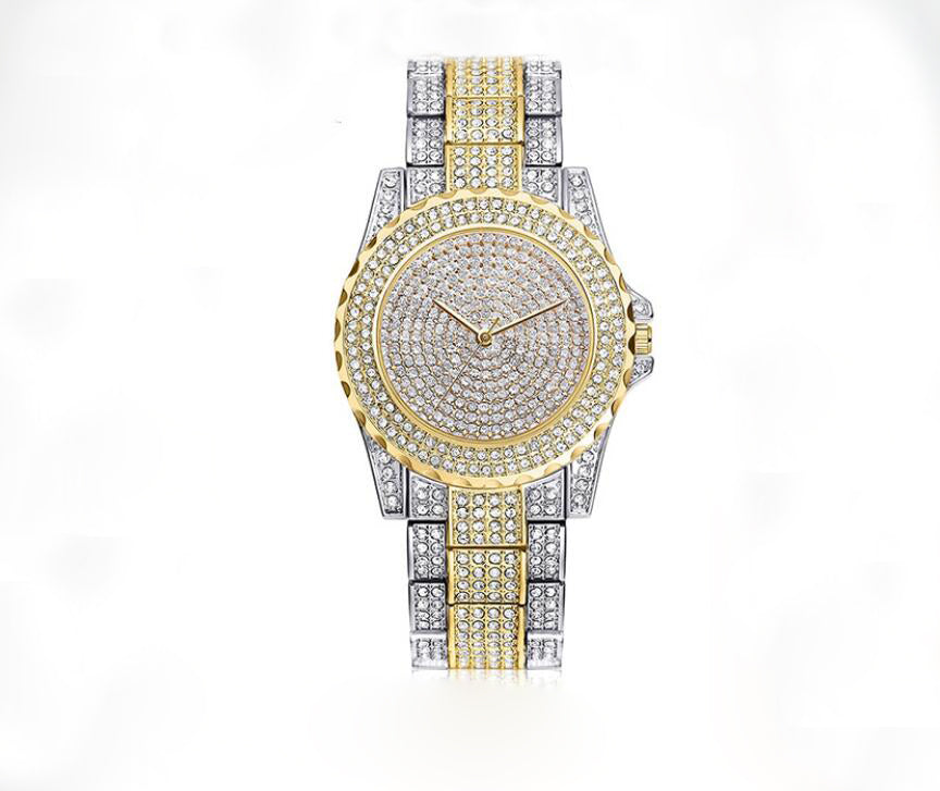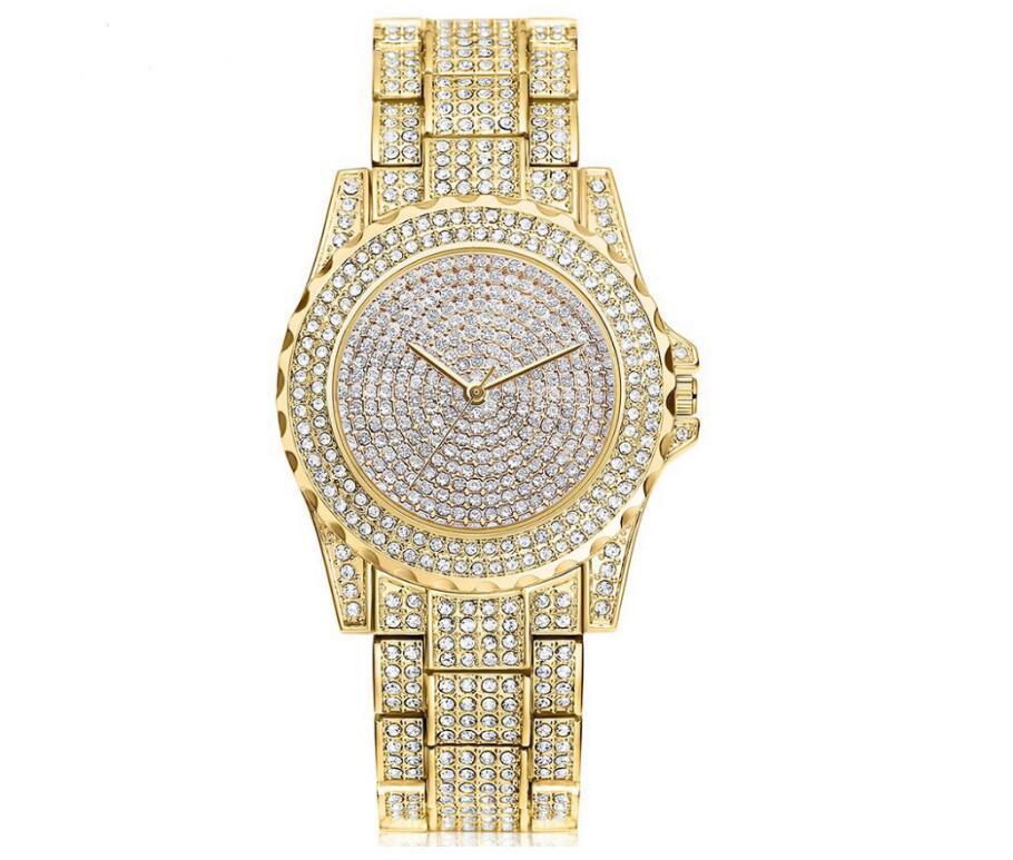 This Fashion Bling Casual Ladies Female Quartz Gold Watch Crystal Diamond is more than just a timepiece; it's a statement piece that reflects your unique style and personality. The gold accents and crystal diamond detailing exude luxury and glamour, making it the perfect accessory to elevate any outfit.