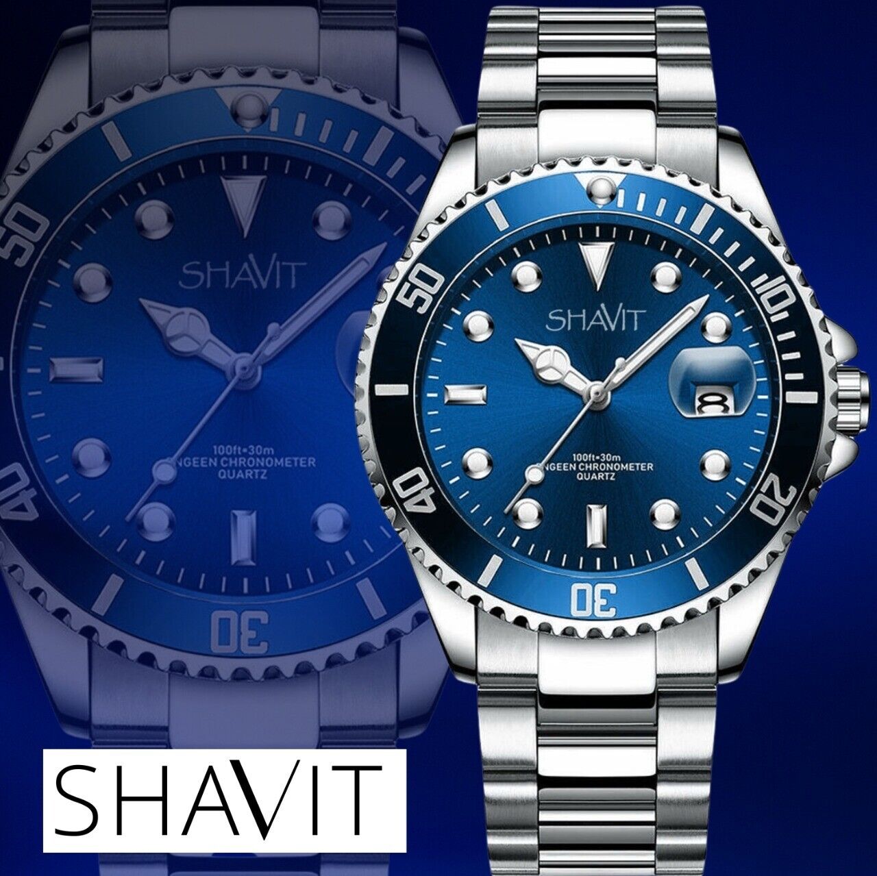 Fashion Men Watch Stainless Steel Analog Quartz Classic Male Wristwatch, Blue
