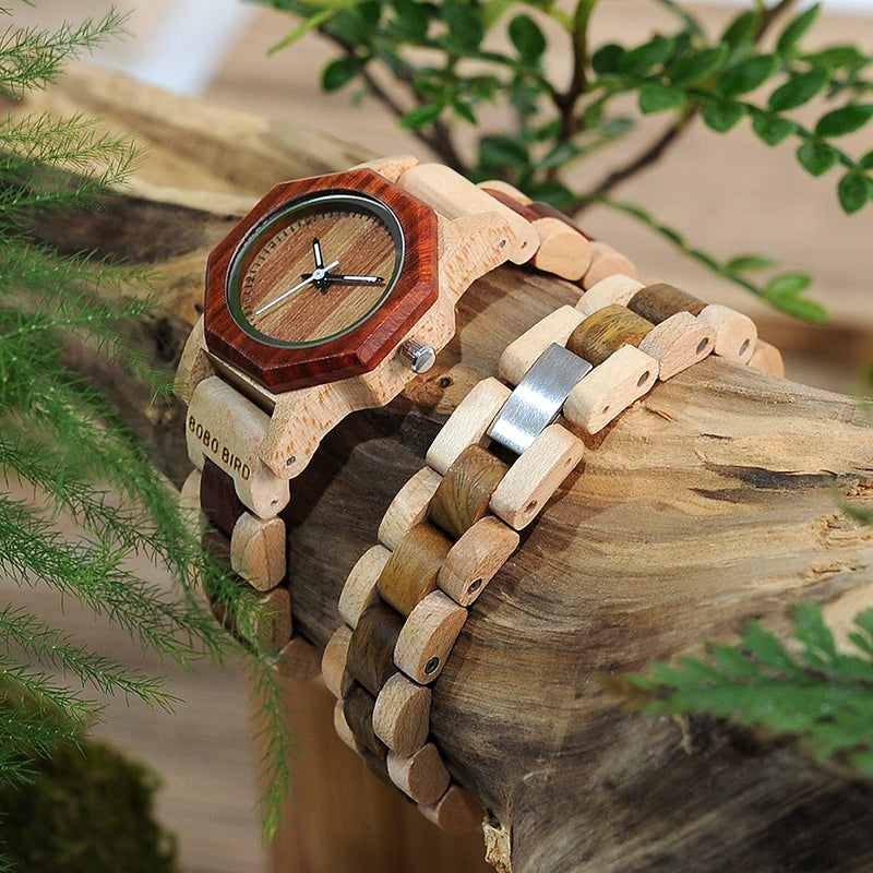 Made from high-quality wood, the case material is not only aesthetically pleasing but also durable. It protects the inner components of the watch, ensuring its long-lasting performance.