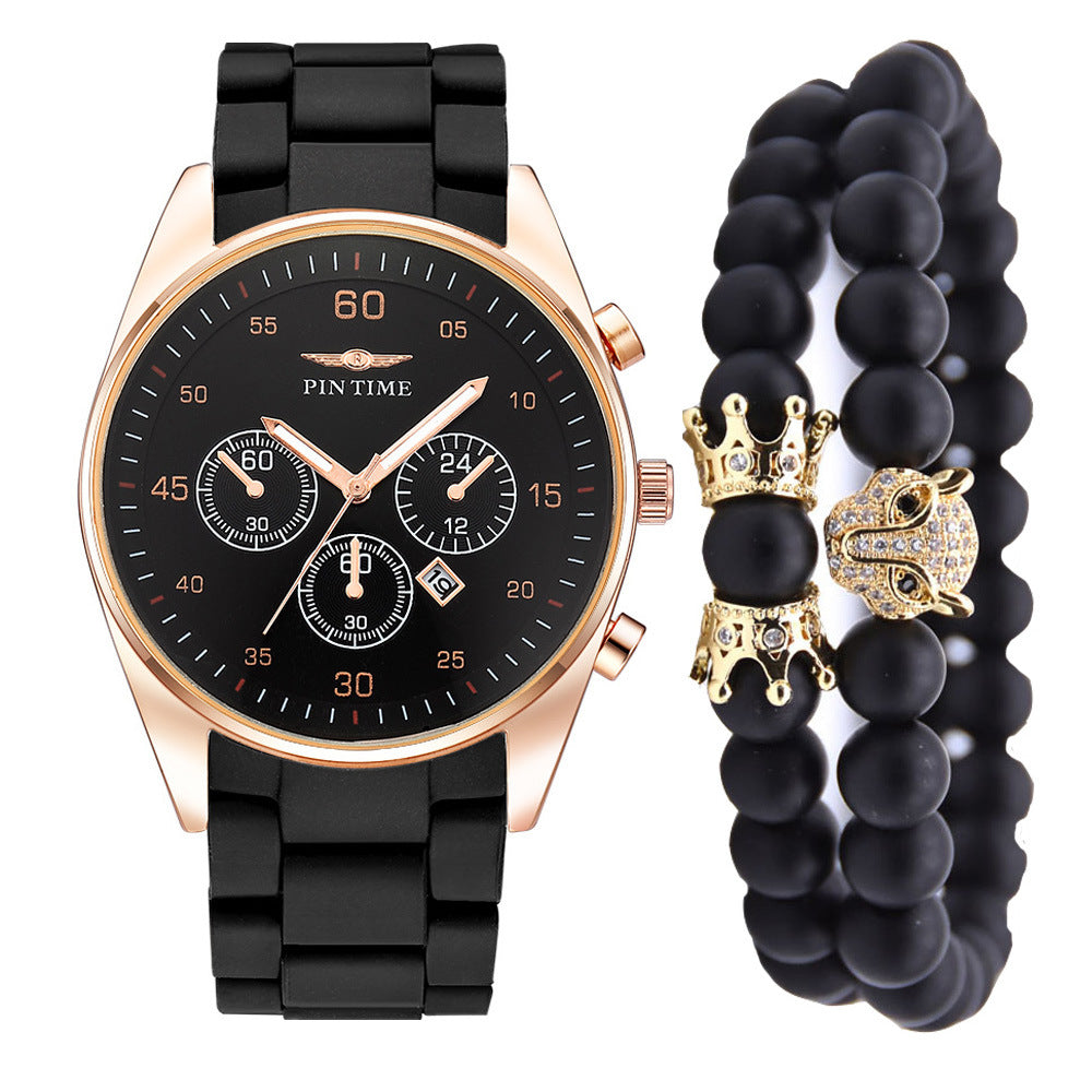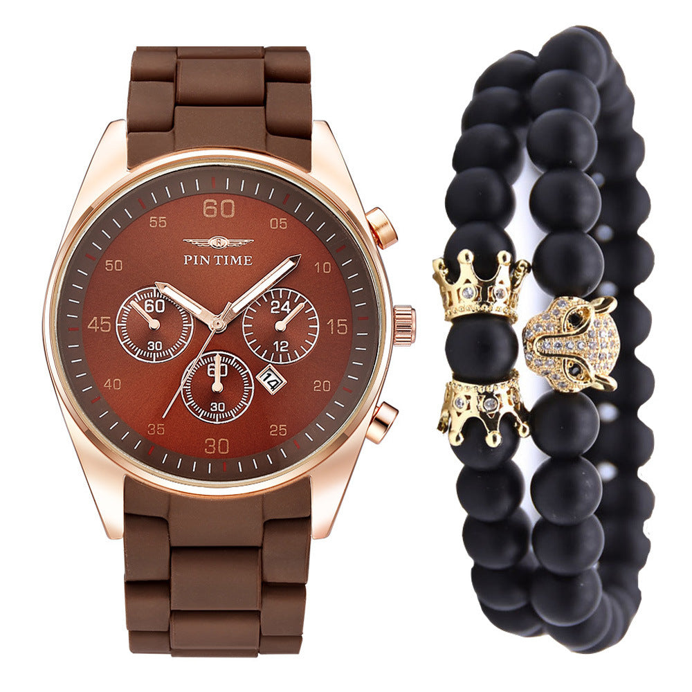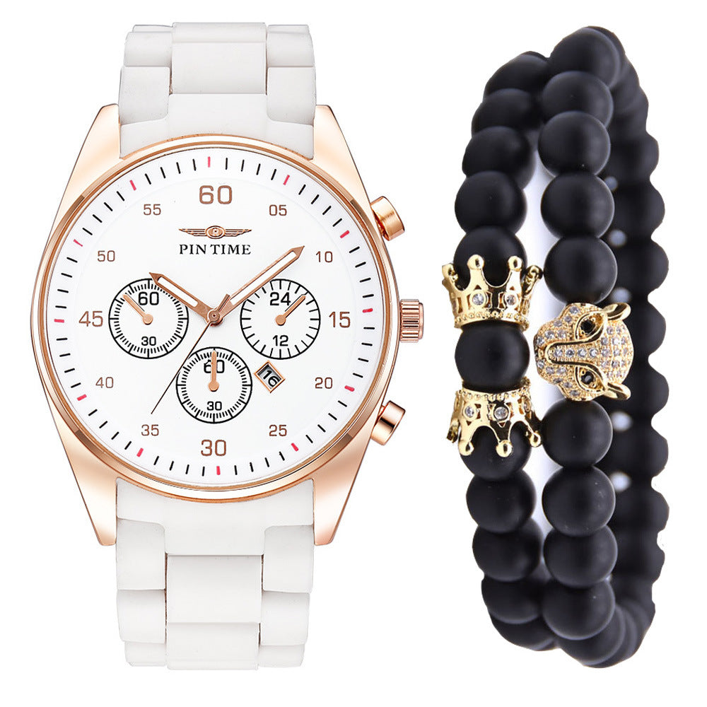 With this purchase, you will receive a quartz watch and a bracelet, making it a great value for your money. The bracelet comes in a set of three, allowing you to mix and match with your watch for a personalized and fashionable look.