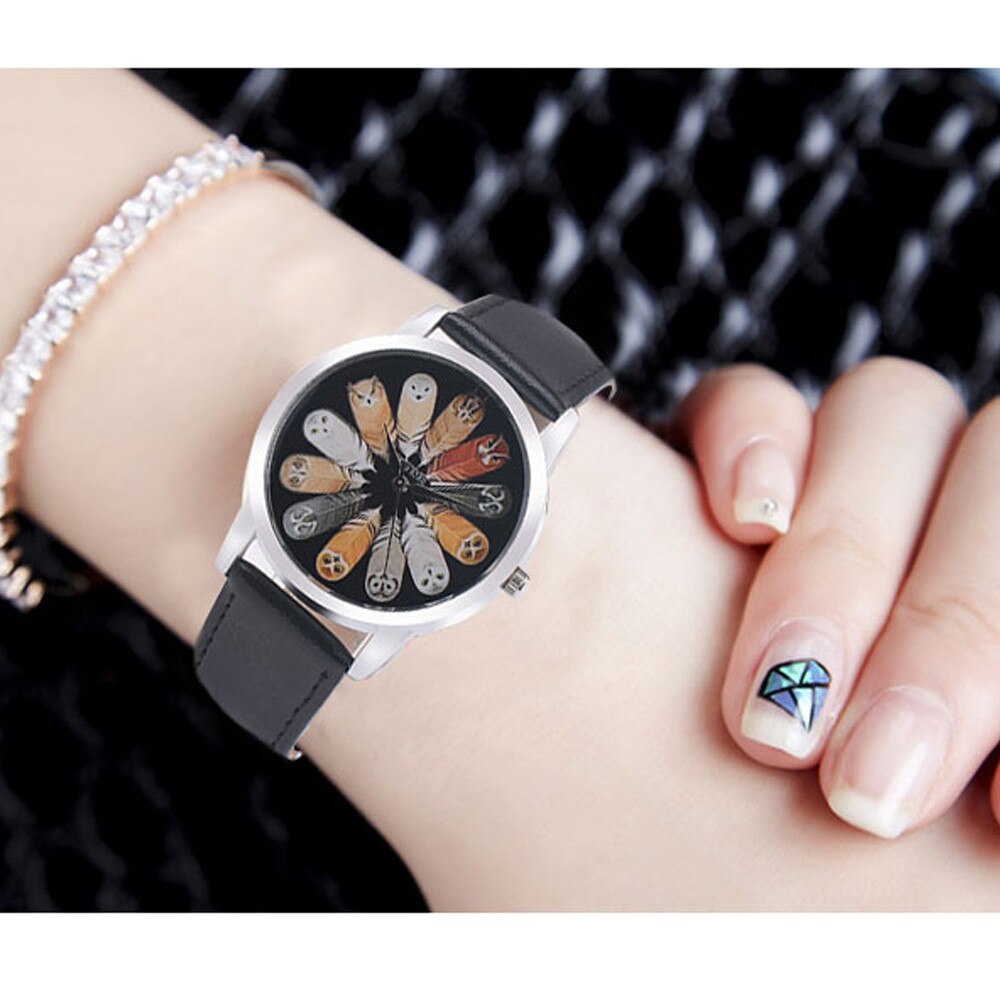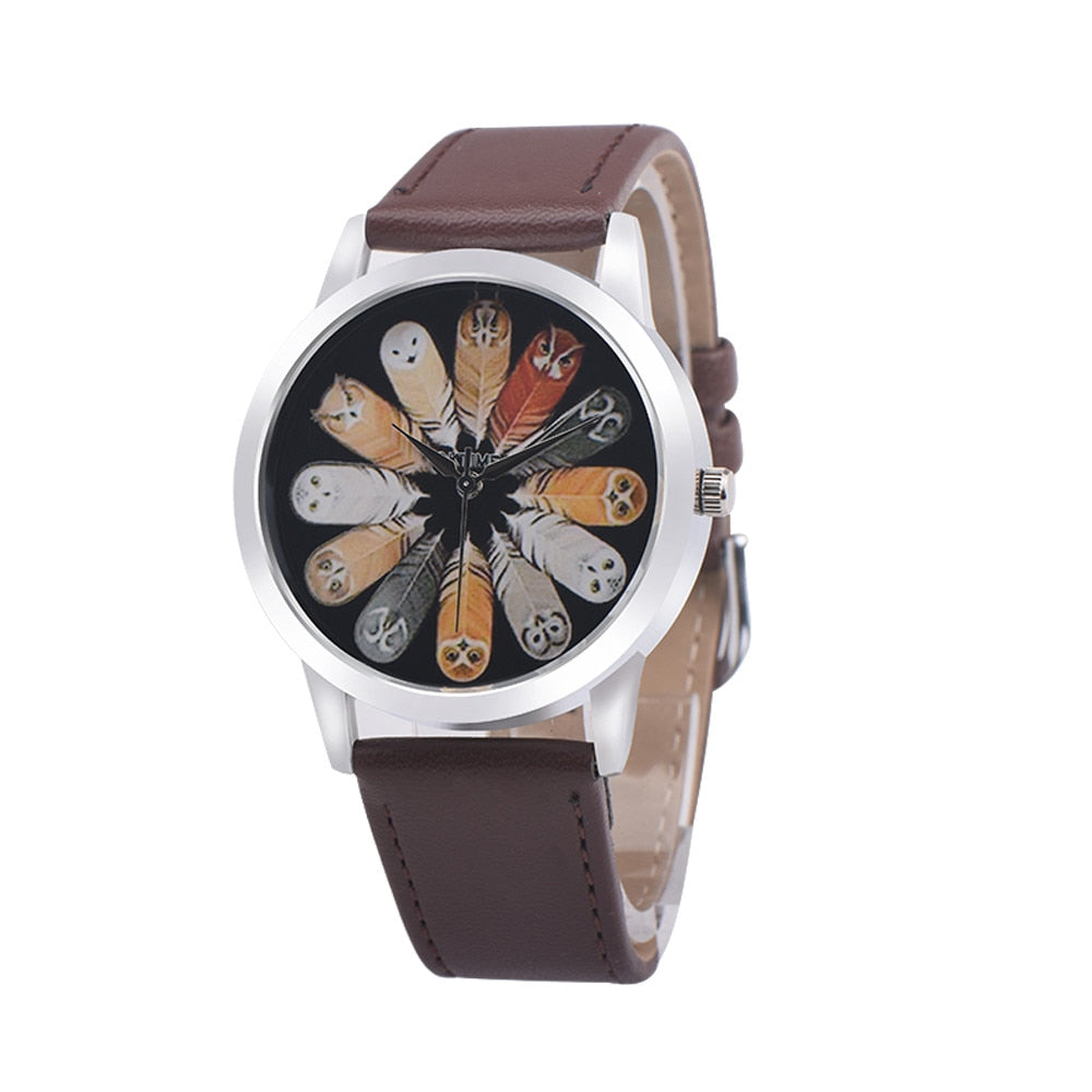 Fashion Student Quartz Cute Owl Feather Watch