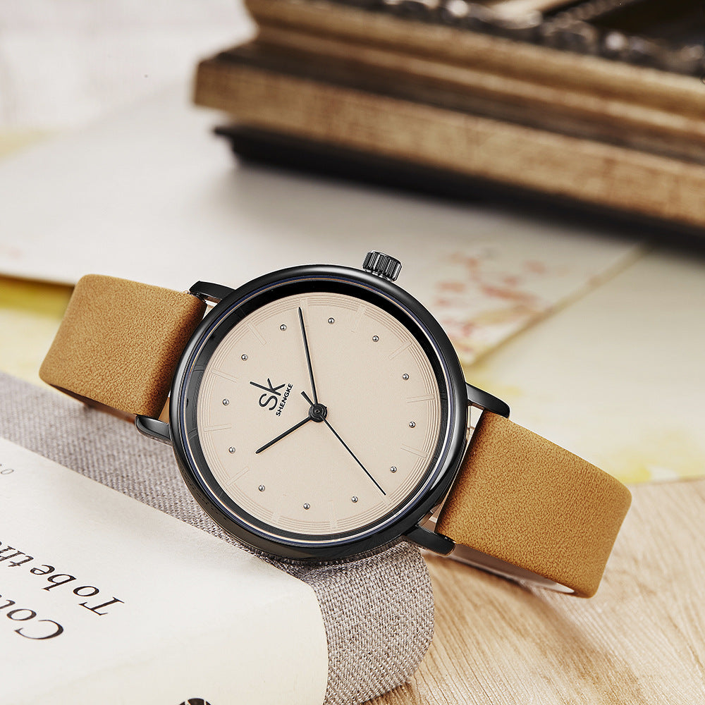 Fashion Trend Quartz Waterproof Microfiber Belt Round Watch