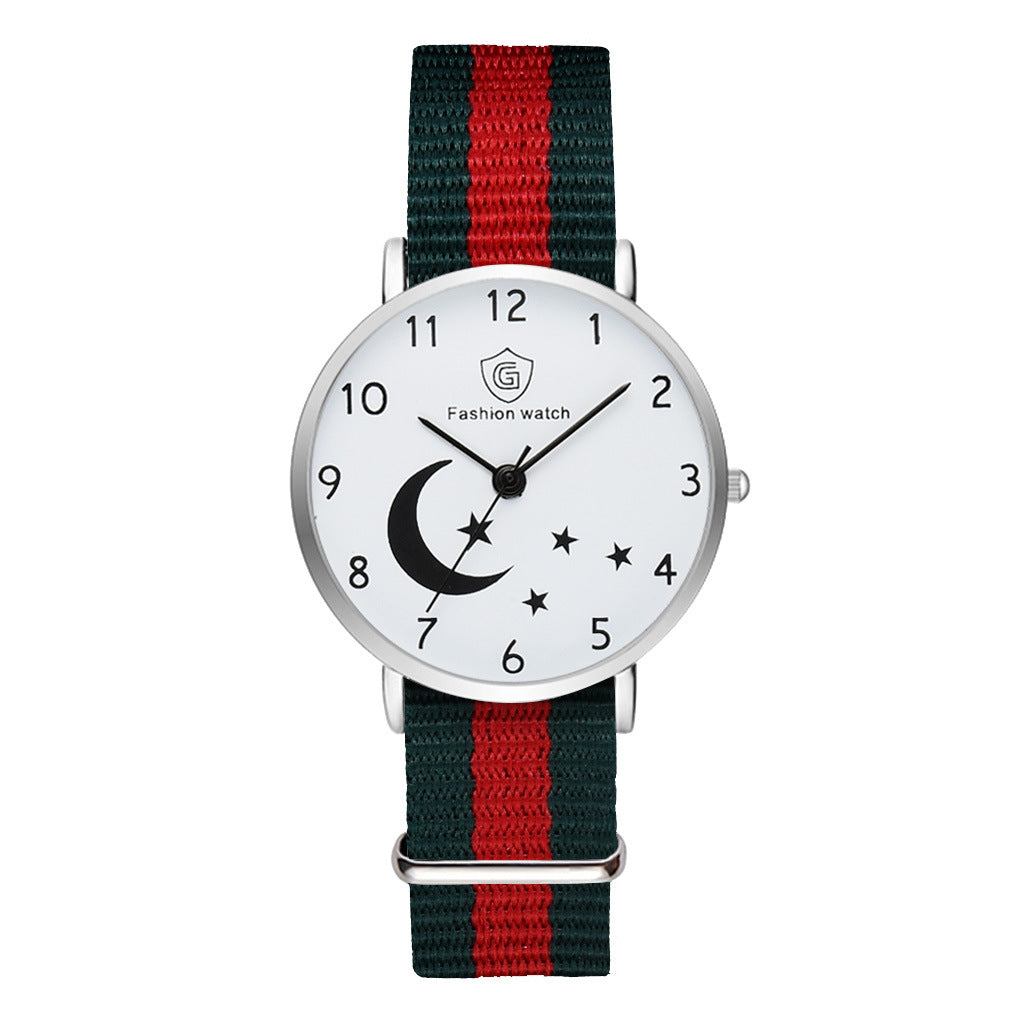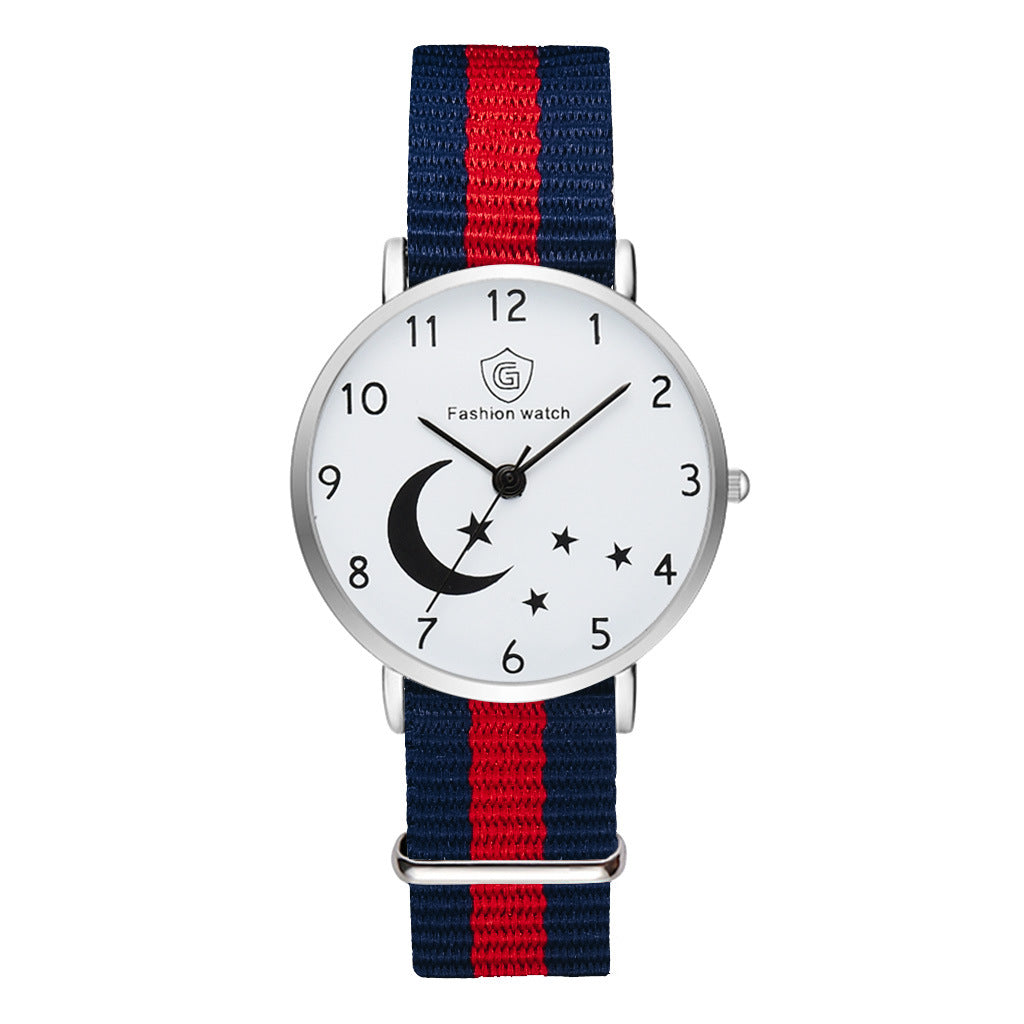 Looking for a fashionable and trendy watch that will add a touch of style to your wrist? Look no further! Introducing our Fashion Watch For Women Bracelet Set, featuring a casual canvas strap and a unique moon and stars pattern. This quartz wristwatch is the perfect accessory for any woman who wants to make a statement.