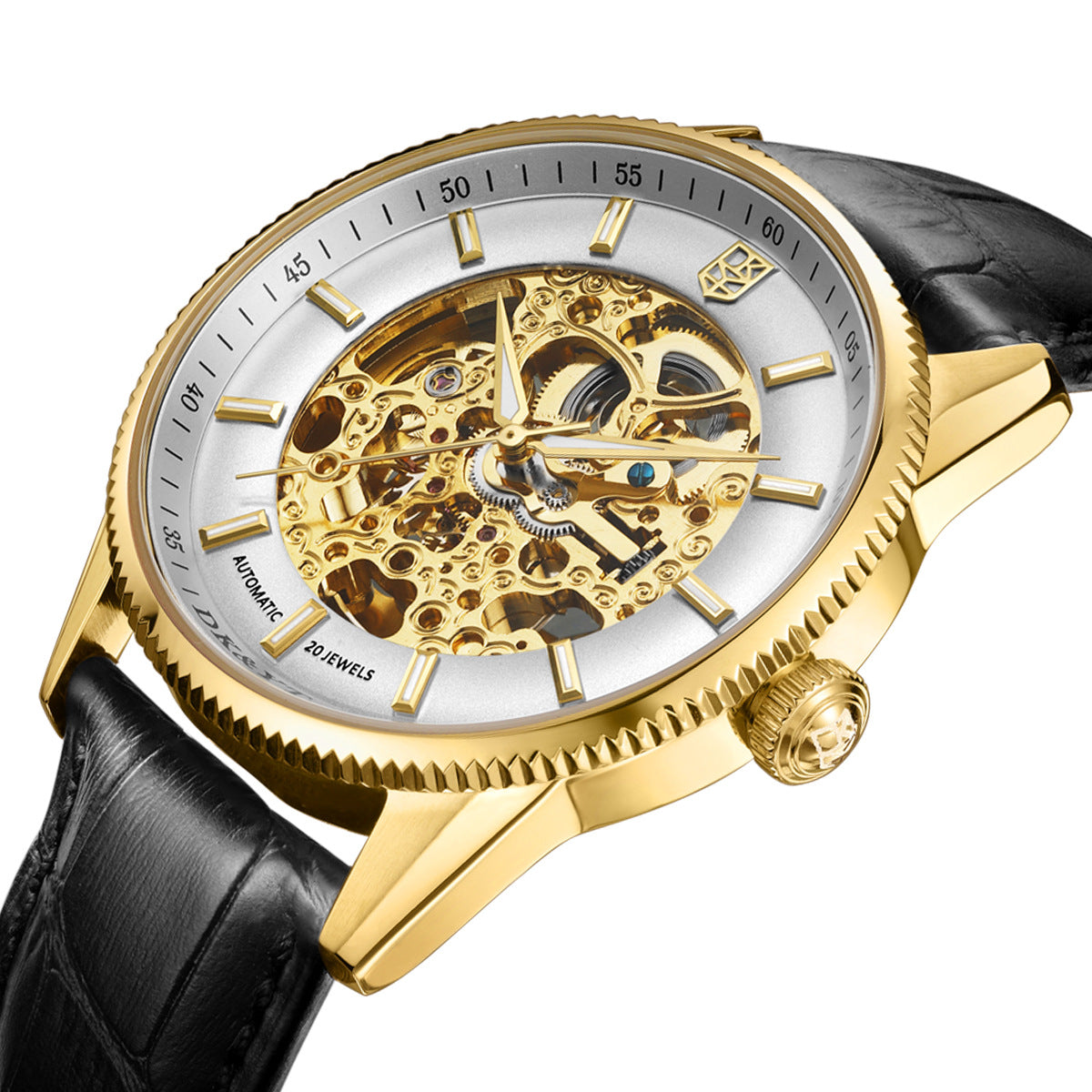 In summary, our fully hollow automatic mechanical watch is a must-have for men who appreciate both style and functionality. With its luminous function, perspective window, and waterproof performance, this watch is perfect for everyday wear. Crafted with precision and attention to detail, this watch combines antique charm with modern technology, making it a standout accessory for any man's collection.