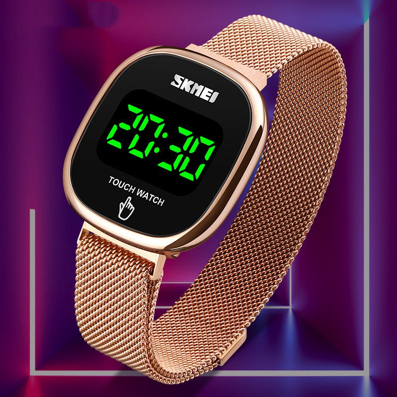 The Glow In The Dark Korean Magnetic Mesh Trend Watch is designed with a normal table type, making it suitable for everyday use. The mirror material used is Shi Ying glass, ensuring durability and clarity. The watch buckle style is a needle buckle, which adds a touch of elegance to the overall design. The clasp material is stainless steel, guaranteeing a secure and comfortable fit.