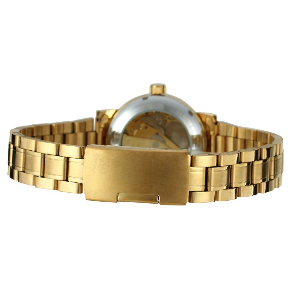 Featuring a transparent bottom, this watch allows you to admire the intricate inner workings of the timepiece. The mineral reinforced glass mirror ensures durability and protection, while the stainless steel case and buckle provide a sturdy and secure fit.