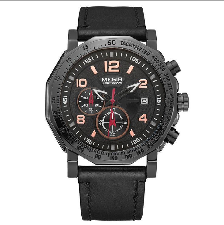 Introducing our Leather Men's Quartz Watch, a multi-function chronograph that combines style and functionality. This waterproof sports watch is the perfect accessory for any man on the go.