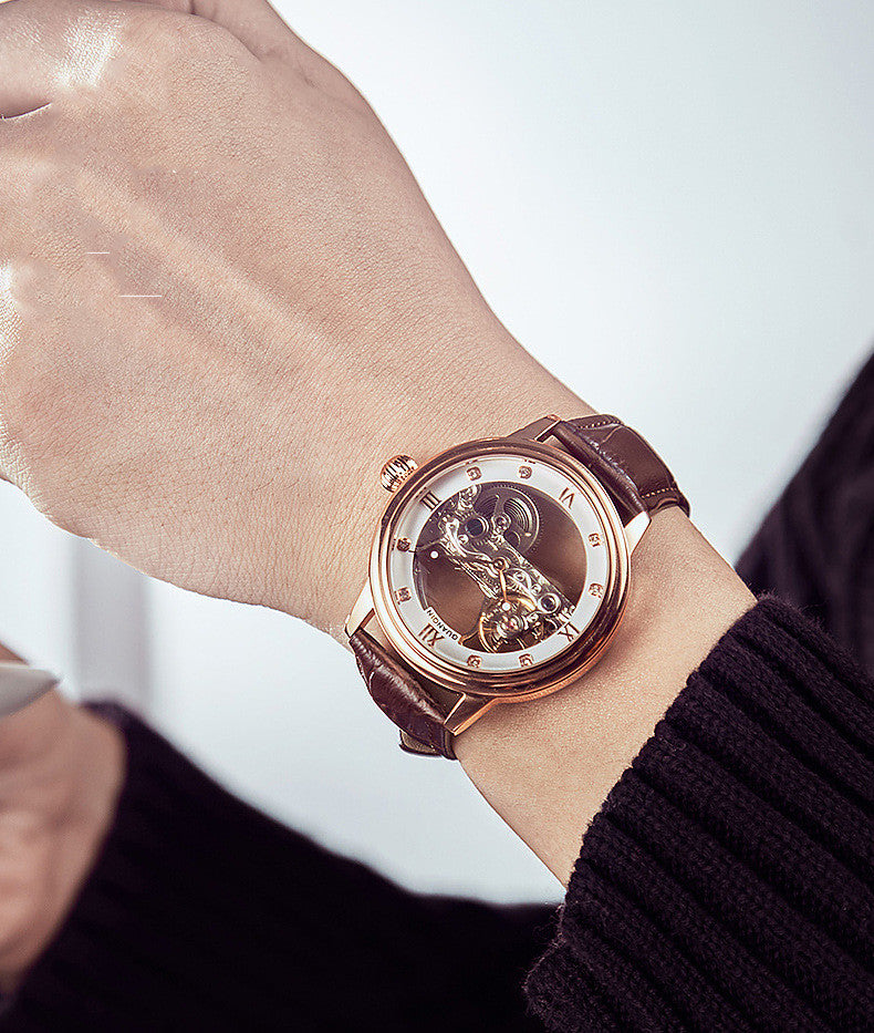 The genuine leather strap material adds a touch of luxury and sophistication to this timepiece. It not only feels soft against the skin but also adds a stylish element to your overall look.