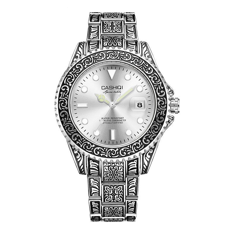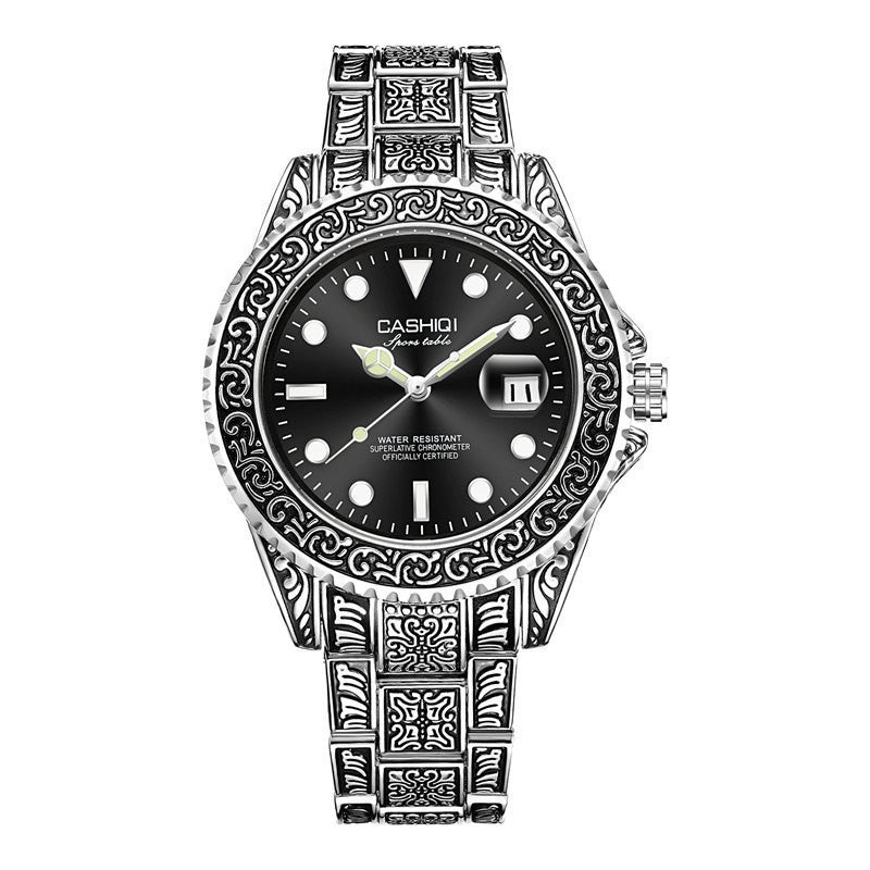 Designed to withstand everyday wear and tear, this watch is water-resistant up to 3 ATM, making it suitable for everyday activities and occasional splashes. The scratch-proof mineral glass protects the dial, ensuring a clear and unobstructed view of the time.