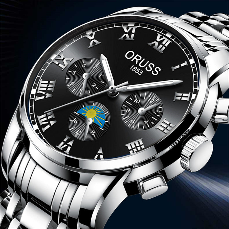 In addition to the standard features, these watches also include a 24-hour indication and luminous hands for easy reading in any lighting conditions. The display mode is a classic pointer type, adding a timeless touch to the overall design. The watch type is specifically designed for men, with a masculine crown. The table bottom is of the ordinary type, ensuring a secure fit on your wrist. The single folding buckle is both stylish and convenient, making it easy to put on and take off.