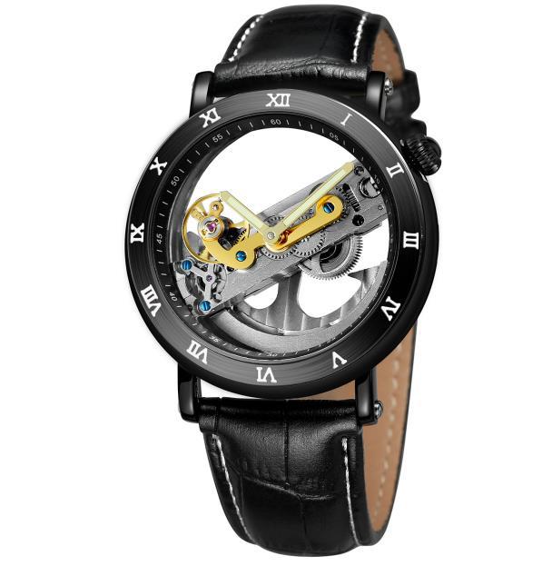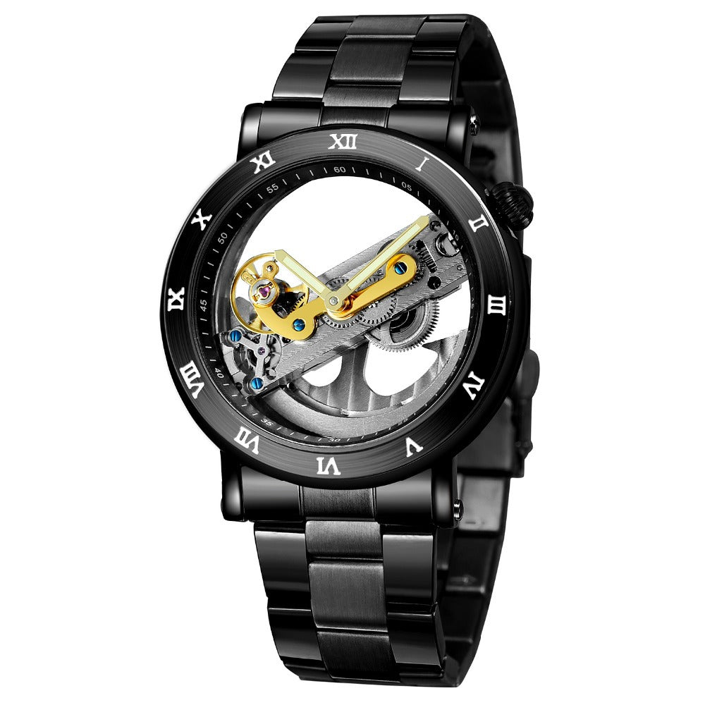 Men's Automatic Mechanical Watch Black All Steel Transparent