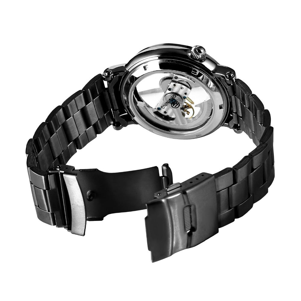 Introducing the Men's Automatic Mechanical Watch in Black All Steel Transparent - a timeless and sophisticated timepiece that combines style and functionality.