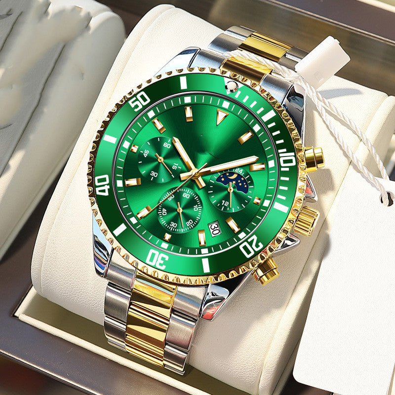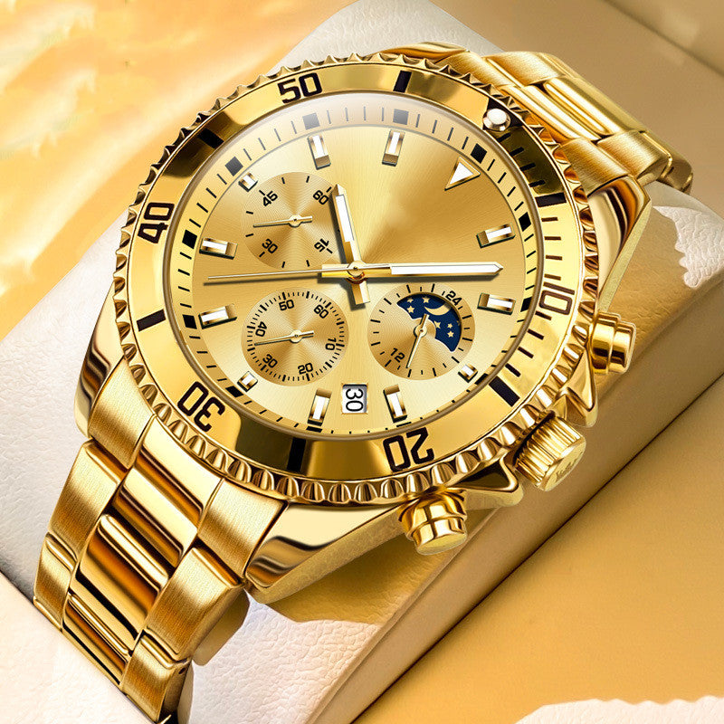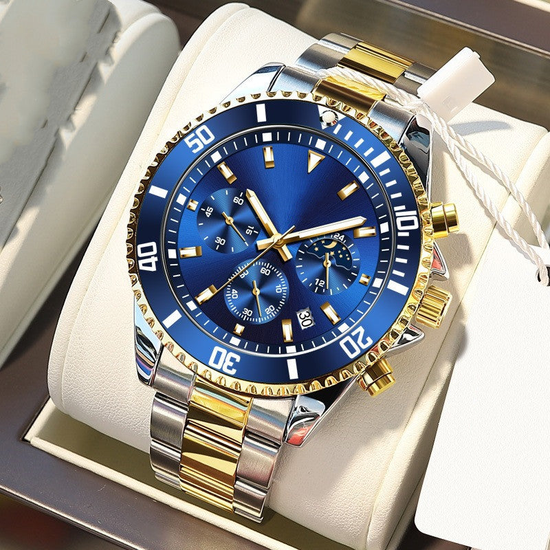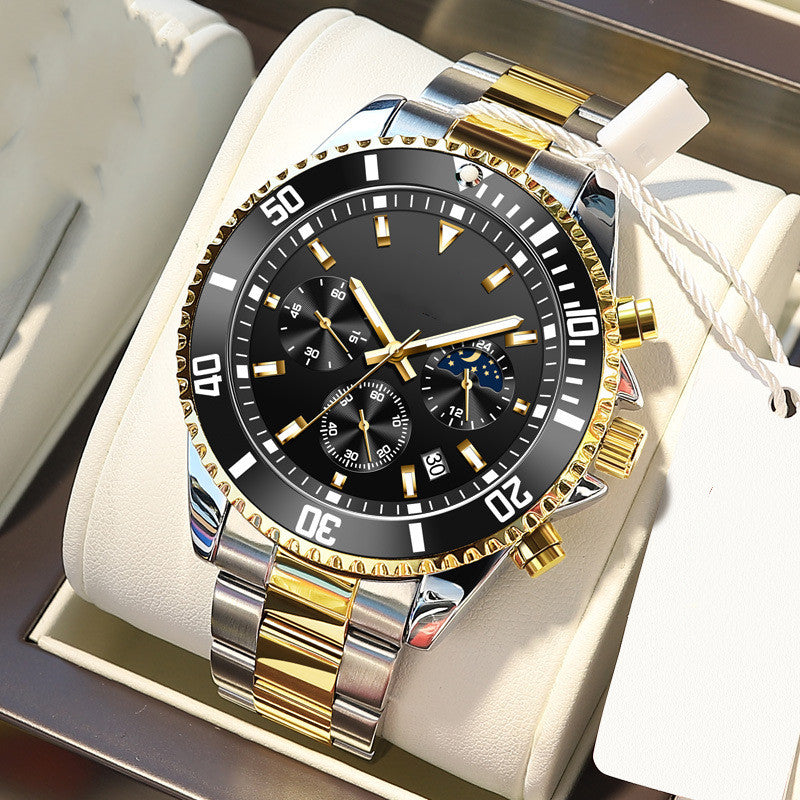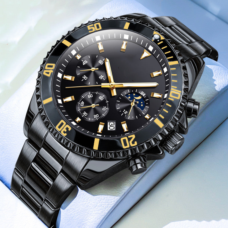 Men's Fashion Multifunctional Chronograph Three-eye Quartz Watch Waterproof Watch