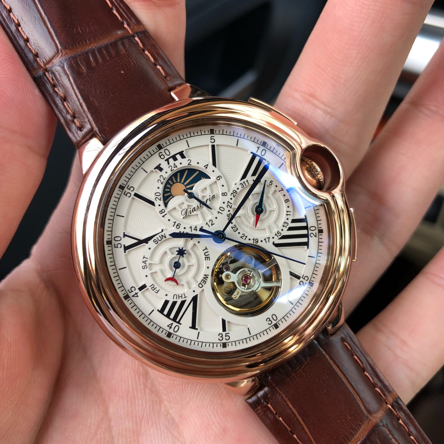 4 style: 6-pin moon phase gold shell black surface