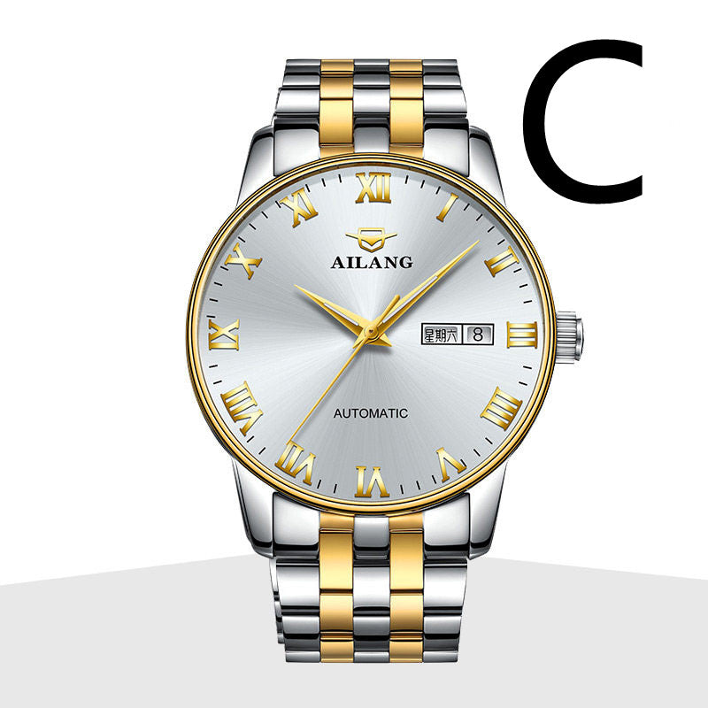 Equipped with a butterfly double snap buckle, this watch offers a secure and adjustable fit, ensuring it stays in place throughout the day. The strap material is stainless steel, known for its durability and resistance to corrosion. This ensures that your watch will withstand daily wear and tear without losing its shine.