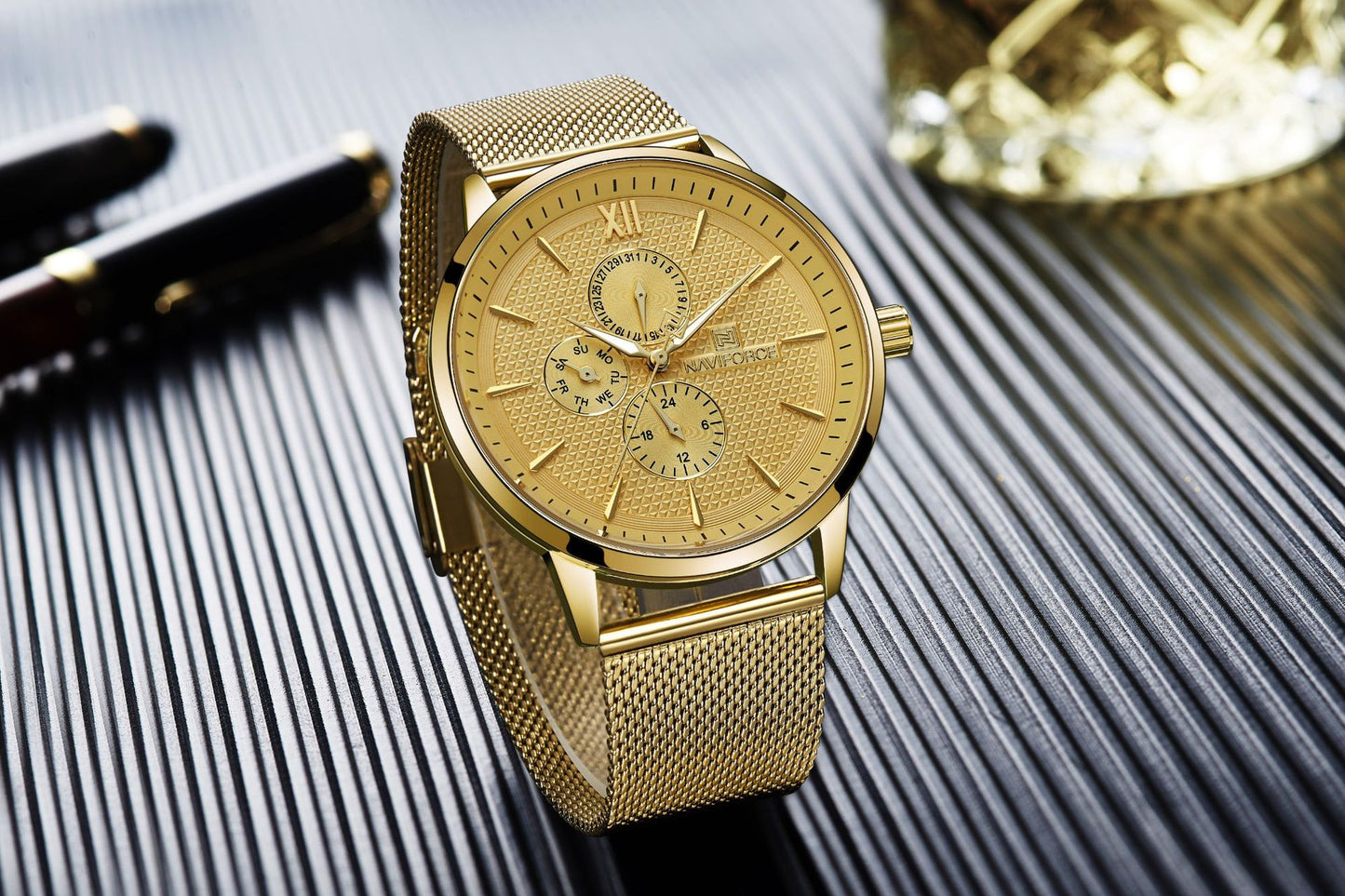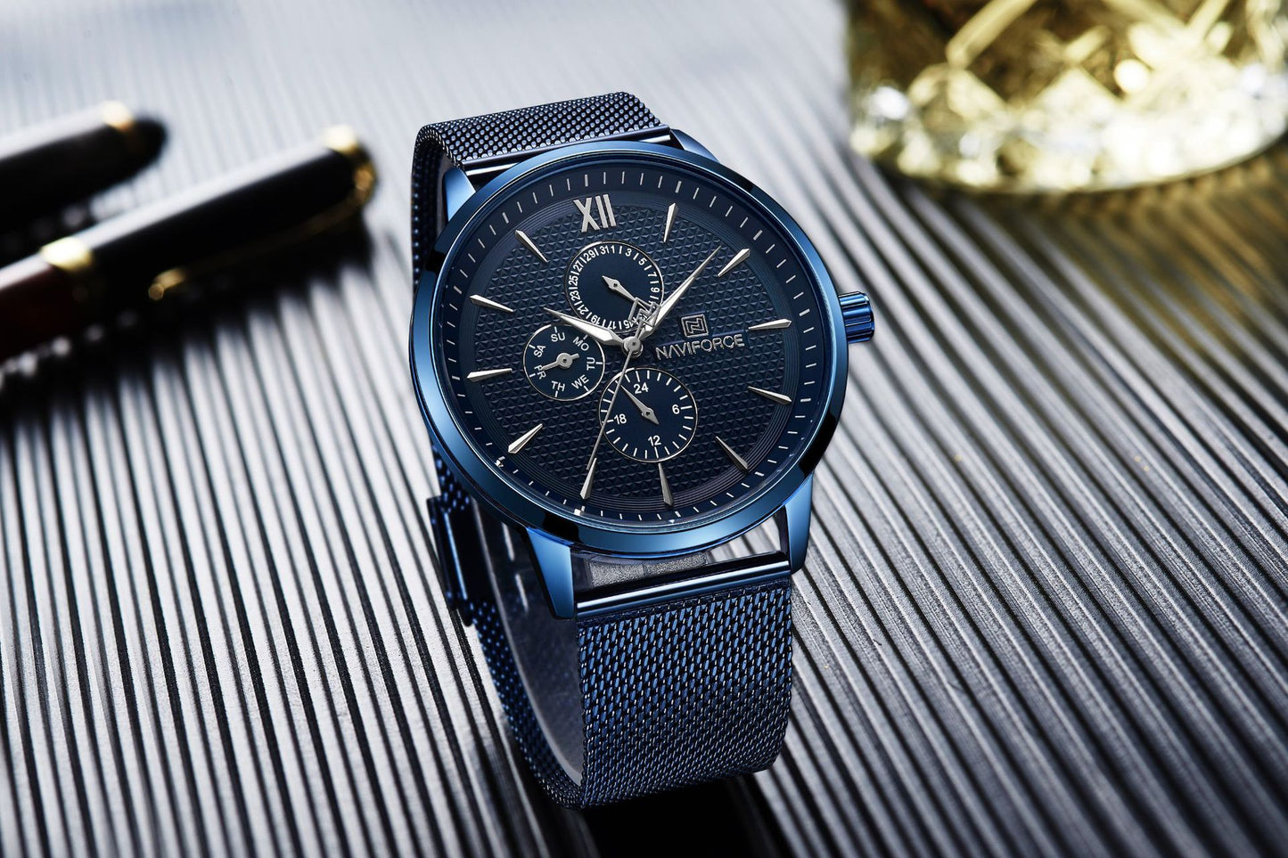 Naviforce Lingxiang New Product 3003 Men'S Watch, Mesh Strap Men'S Watch, Six-Hand Watch, Waterproof Quartz Watch