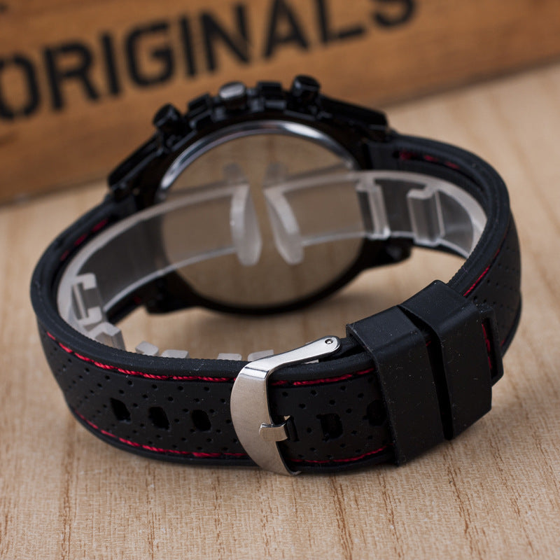 Display type pointer for the crowd general style sports Waterproof not possible movement type quartz Movement Origin China Movement Model 377 Thickness 8mm Dial diameter 40mm Crown type Common crown Bottom type Normal Mirror material Ordinary glass mirror Buckle style Pin buckle Buckle Material Stainless Steel Strap Material Silicone Dial Shape Round Case material Alloy packaging specifications opp bag Color white red belt, white leucorrhea, black leucorrhea, black red belt