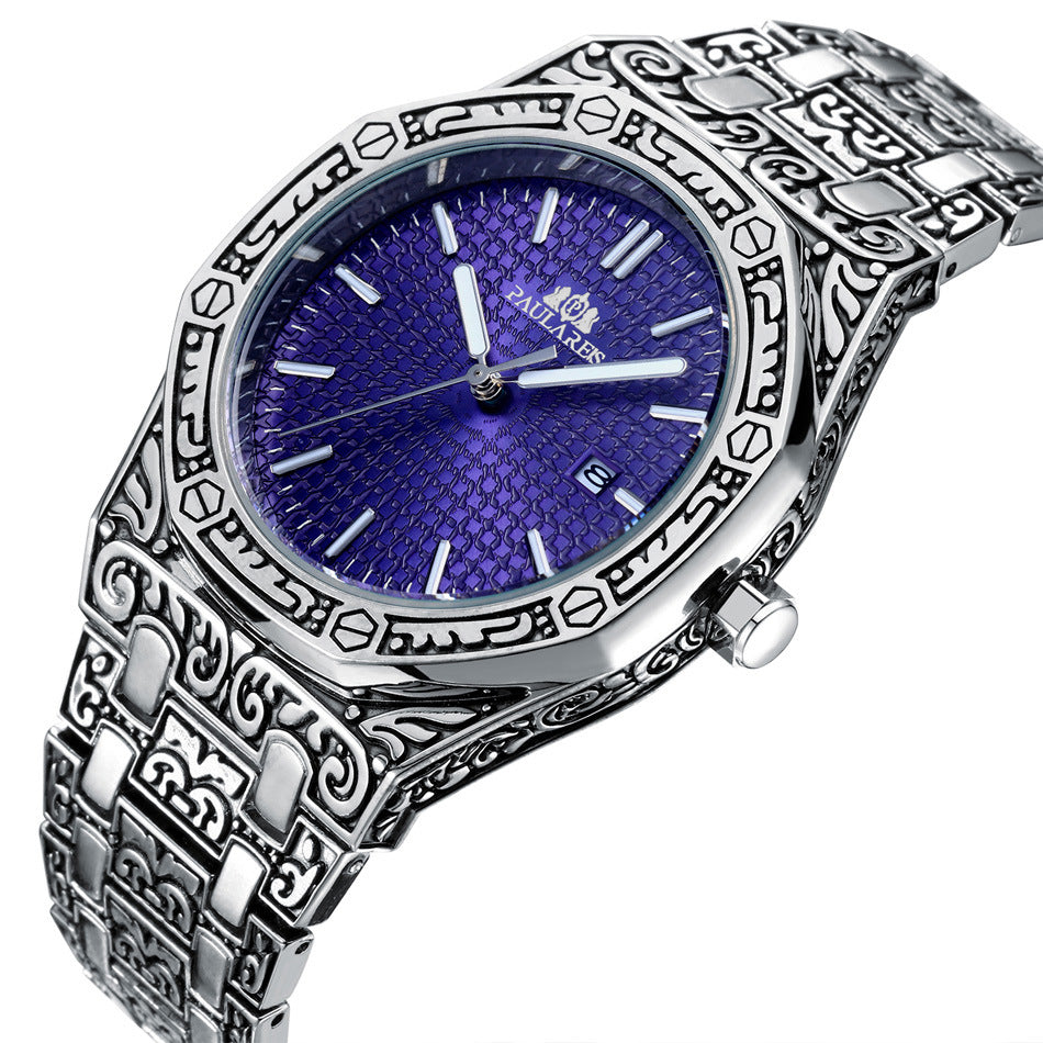 In conclusion, the PAULAREIS Quartz Carved Oak Calendar Luminous Men's Watch is a must-have accessory for any man who values style and functionality. With its luminous display, calendar feature, and waterproof capability, this watch is designed to impress. Its quartz movement, durable materials, and sleek design make it a reliable and fashionable choice. Choose the color that speaks to you and elevate your style with this exceptional timepiece.