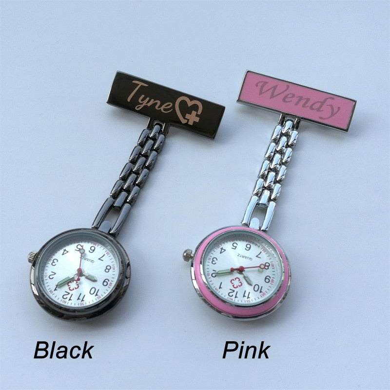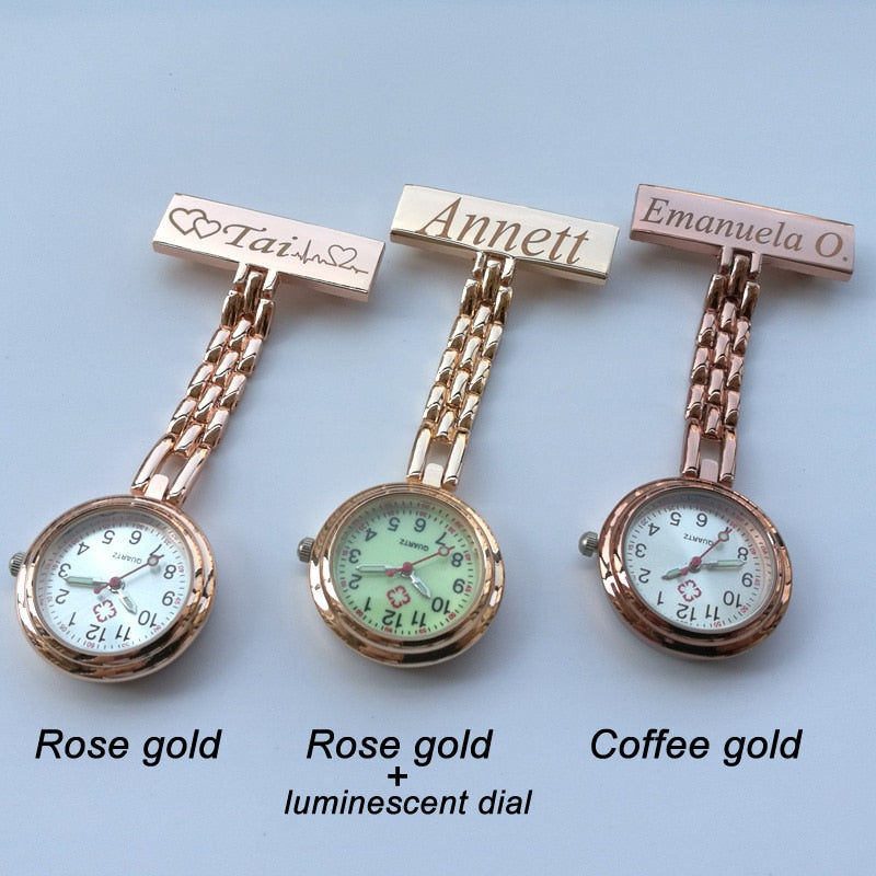 Personalized Customized Engraved with Your Name Stainless Steel Lapel Pin Brooch TOP Quality Rose Gold Fob Nurse Watch