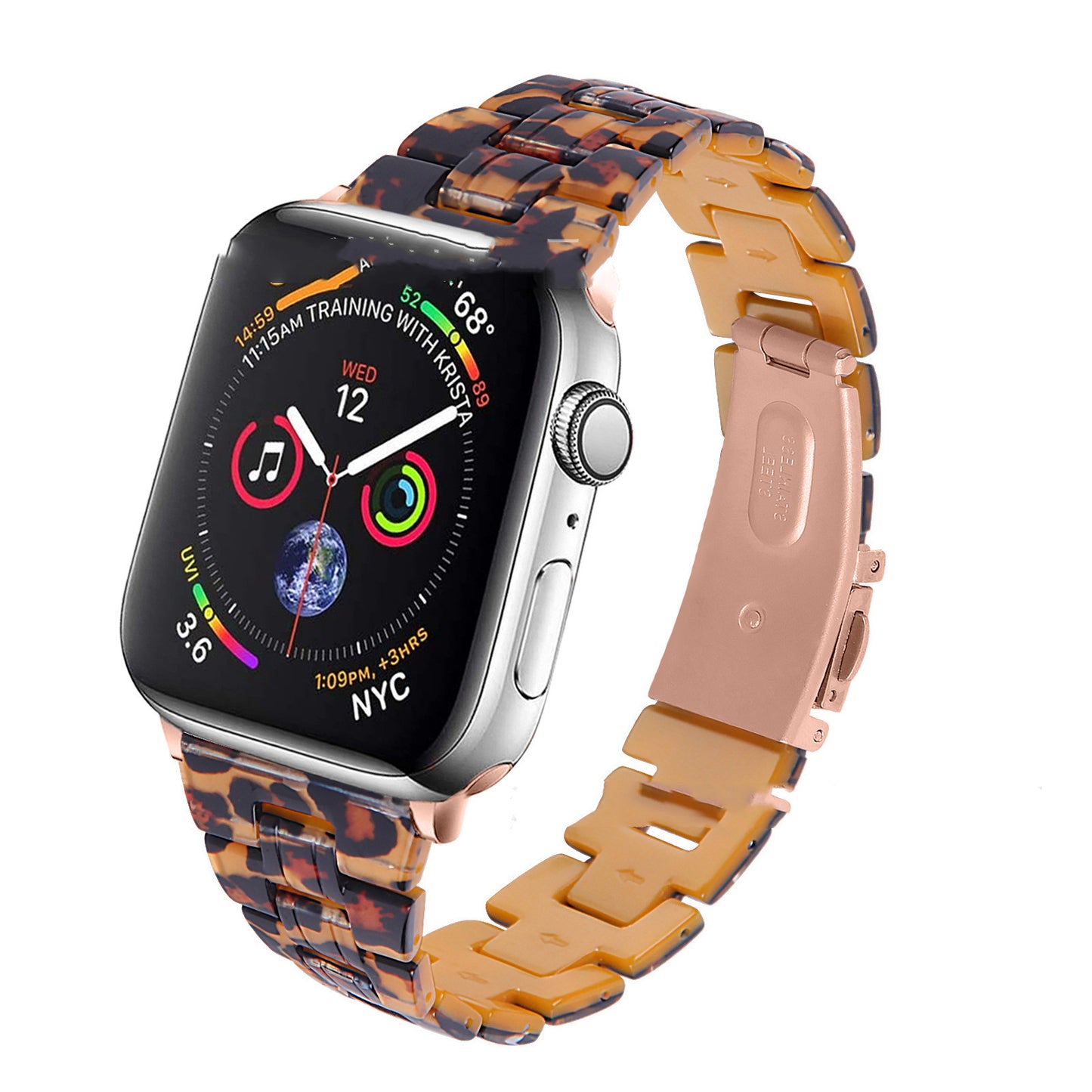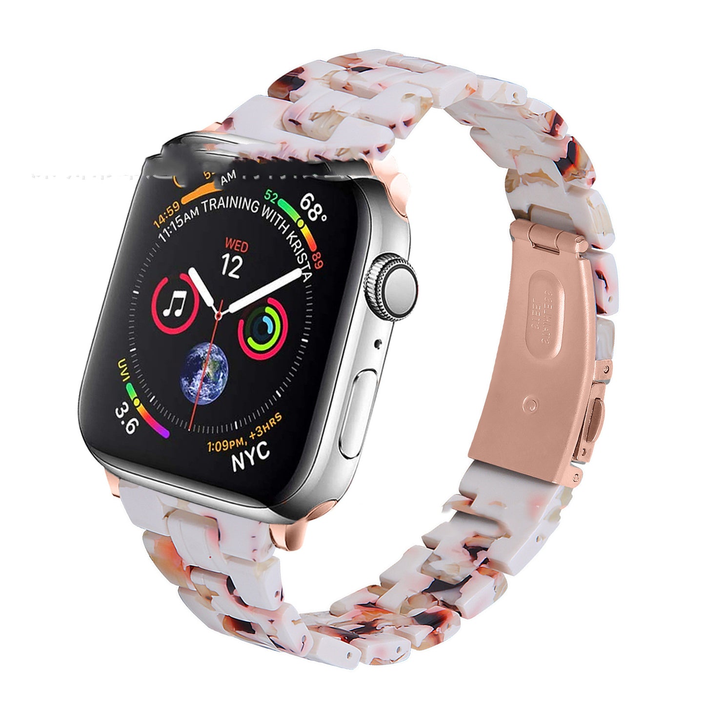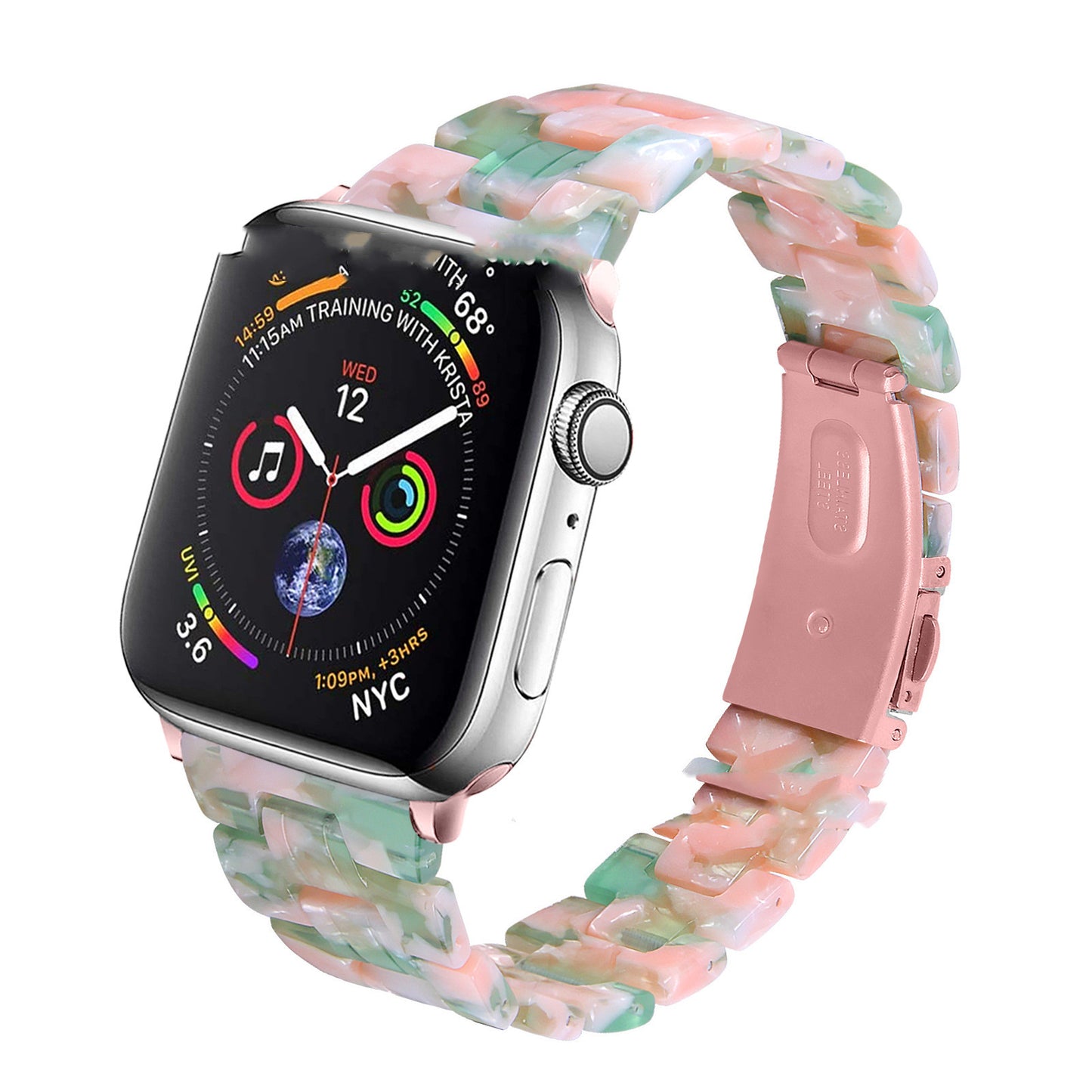 With a product size ranging from 5.5 to 8.1 inches, this strap is suitable for Apple 4/5/6 models. It offers a perfect fit for your wrist, ensuring comfort and convenience throughout the day. The Resin Slim Waist Metal Three-bead Watch Strap is available in a wide range of captivating colors and patterns, including leopard print, rainbow, tortoiseshell, pink flower, pink green flower, pink, black flower, black, blue ice ocean, facial makeup red, dark green flower, nougat, chocolate, flash white, purple, pink, transparent, dumb army green, purple and green flowers. Whatever your personal style may be, there is a color or pattern that will suit your taste.
