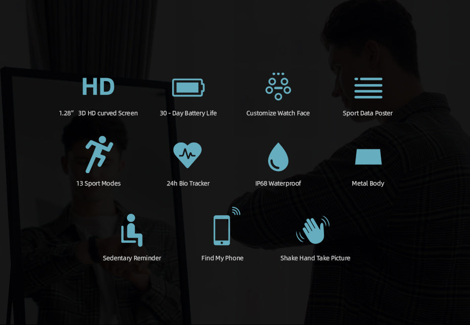 1.28” TFT large screen, 240*240 HD display provides you clear and vivid view. 3D curved glass with curvy alloy case ensures every touch smooth and mellow. With accurate algorithm to record mileage, and calories data. Equipped with built-in low consumption sensors, accurate workout status can be tracked in real time Built-in optical heart rate sensor with advanced algorithm ensures you full day heart rate monitor at rest or during workout. Comes with a large battery capacity and IP68 waterproof level. Support notification push and sleep monitor.