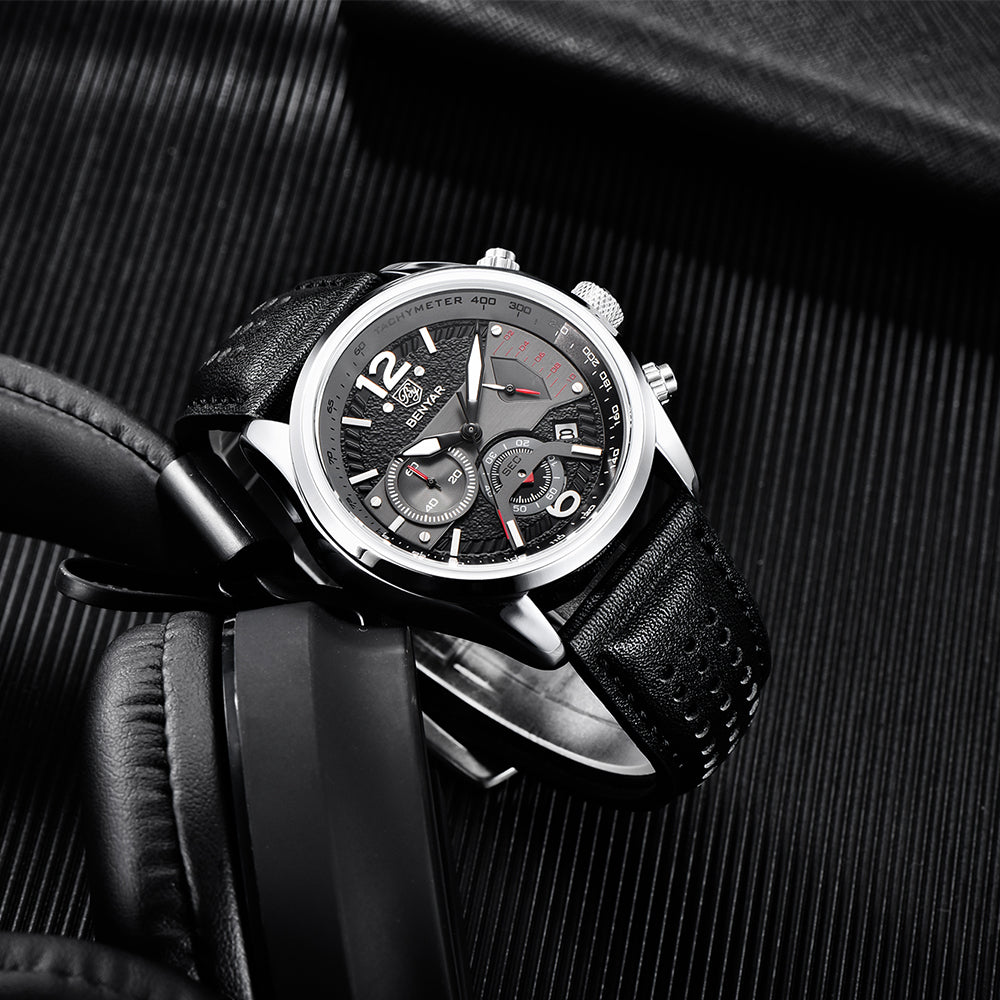 BENYAR 2021 Nouveaux hommes Montre À Quartz Étanche Sport Chronographe Montre Pour Hommes Haut De Gamme en cuir Militaire Montre Reloj Hombre