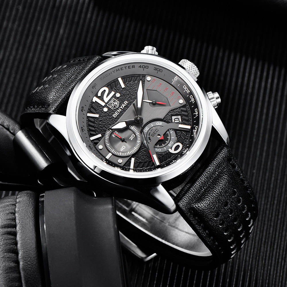 Sports Multi-function Timing Leather Quartz Watch