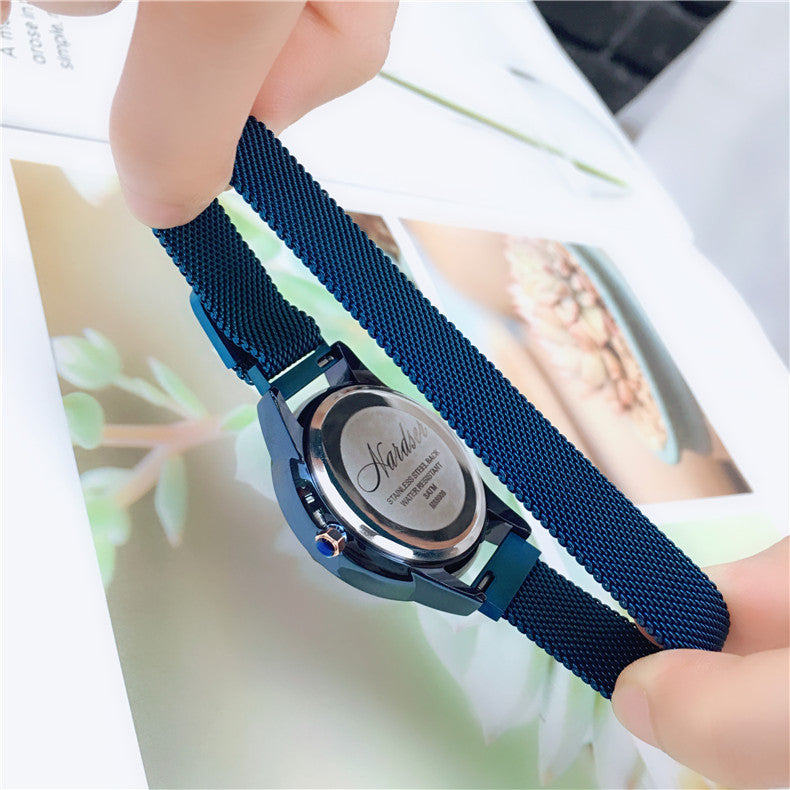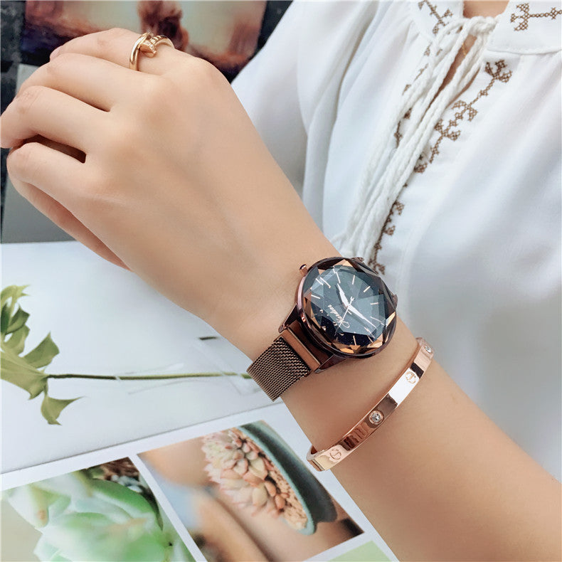 The single folding buckle, made of rose gold, offers a secure and comfortable fit. The strap is crafted from high-quality metal, ensuring long-lasting durability. The round dial shape and copper shell case exude elegance and sophistication. Available in a range of attractive colors including purple, blue, black, rose gold, and caramel coffee, there is a color to suit every individual's style.