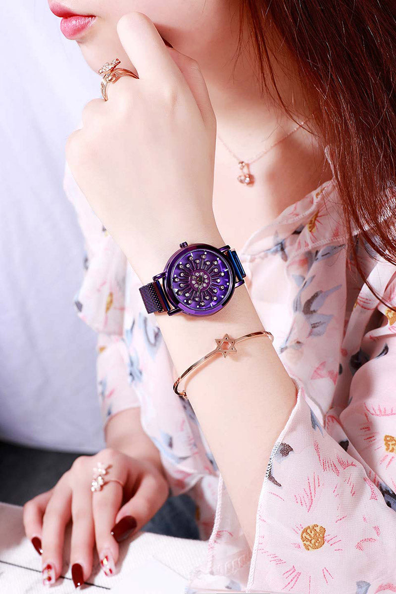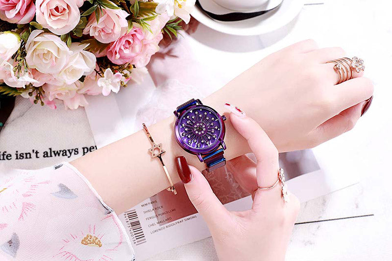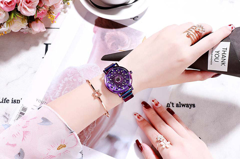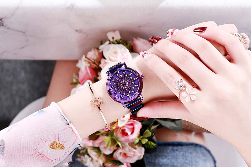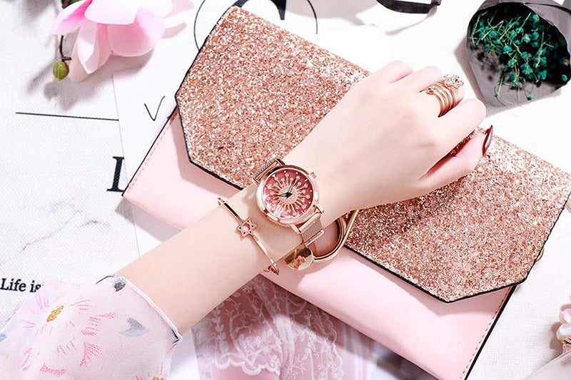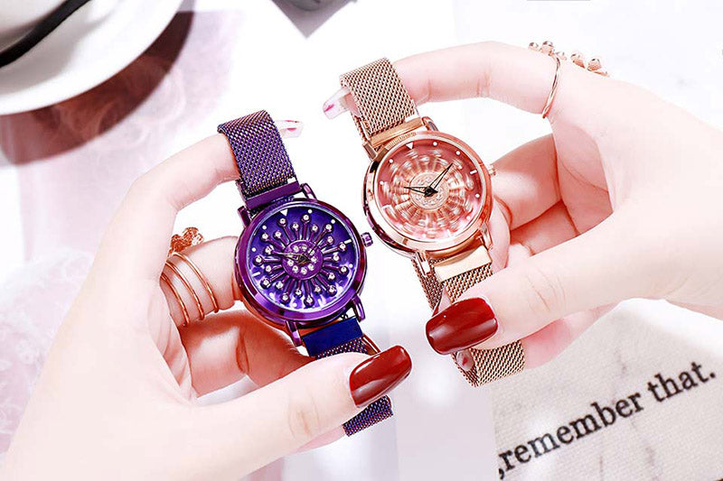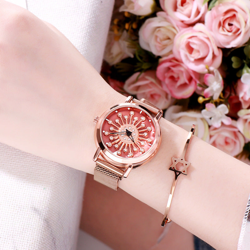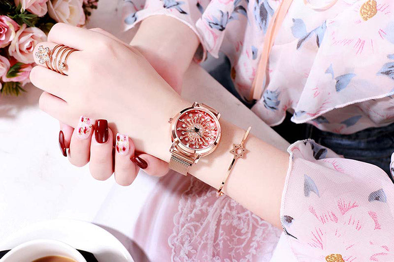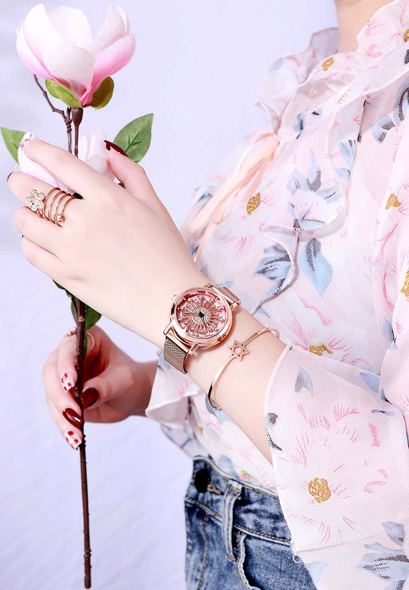 This watch is not only a fashionable accessory but also a practical one. It is water-resistant, allowing you to wear it while washing your hands or caught in the rain without worrying about damage. The mesh strap adds a touch of sophistication and is adjustable to fit any wrist size.