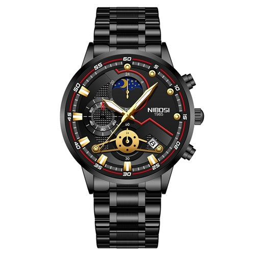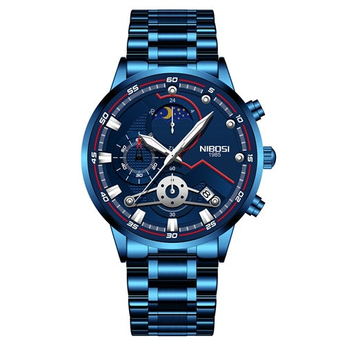 Special functions: luminous, moon phase, chronograph, calendar, small three needles