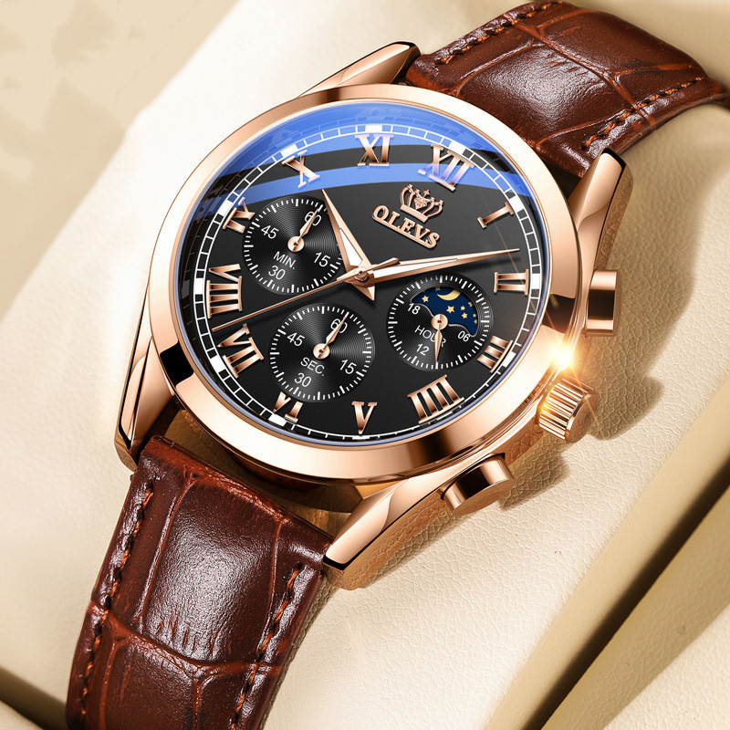 In conclusion, our Multi-function Sports Three-eye Six-hand Chronograph watch is a perfect blend of style and functionality. With its impressive waterproof performance, reliable quartz movement, and sleek design, it is the ideal companion for those who lead an active lifestyle. Whether you're hitting the gym, exploring the great outdoors, or attending a formal event, this watch will not only keep you on time but also elevate your style game. Choose quality, choose reliability, choose our Multi-function Sports Three-eye Six-hand Chronograph watch.