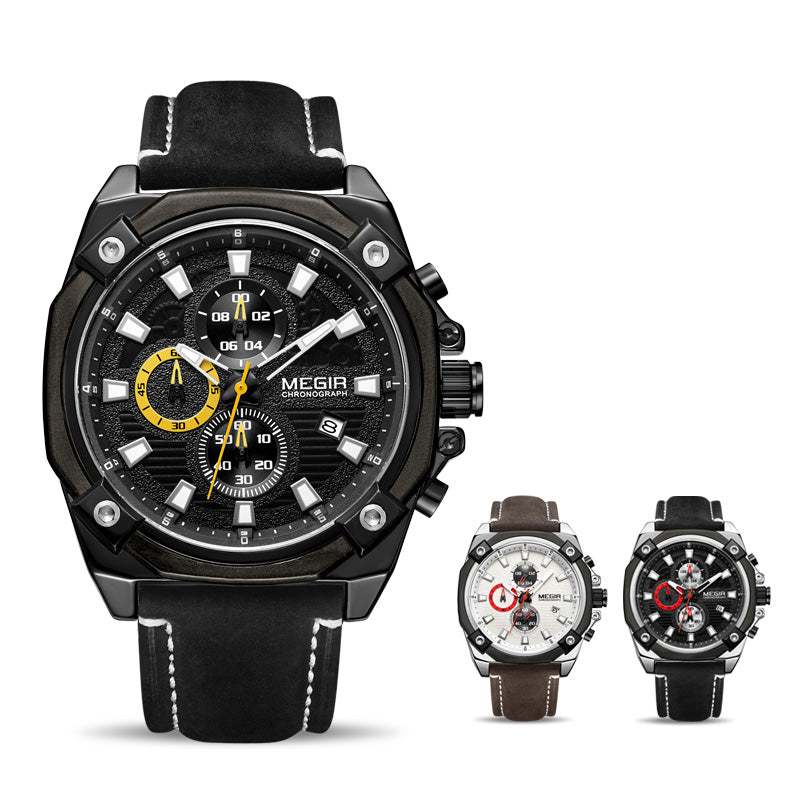 In conclusion, the Multifunctional Chronograph Sports Calendar Quartz Watch for Men is a timepiece that combines style, functionality, and durability. With its waterproof design, genuine leather strap, and multifunctional features, this watch is a perfect companion for any man who values fashion and practicality. Choose from the timeless colors of silver, black, and white to enhance your personal style. Order now and experience the luxury of owning a high-quality watch that will elevate your overall look.