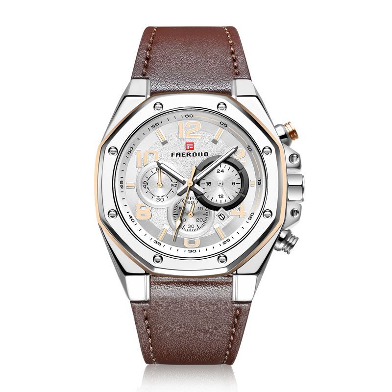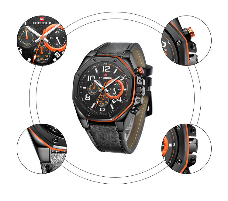 In summary, the three eyes chronograph movement watch is a stylish and functional timepiece. With its waterproof performance, quartz movement, and comfortable strap, this watch is perfect for everyday wear. Add a touch of elegance to your wrist with this stunning timepiece.