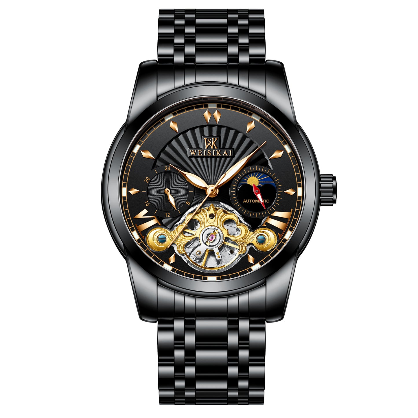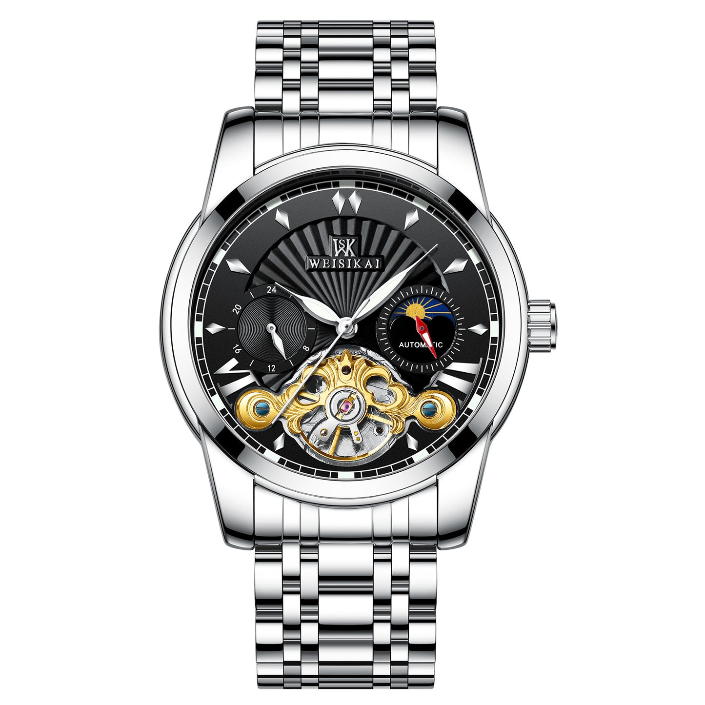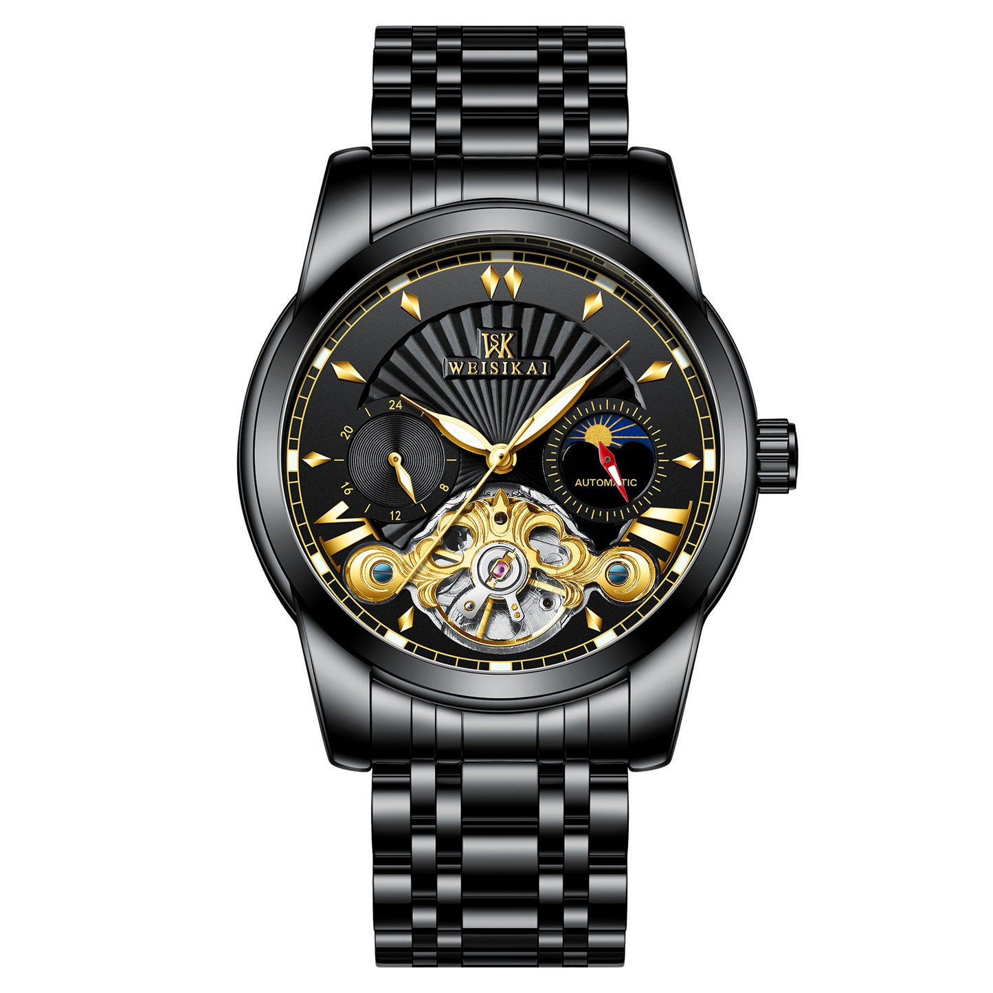 Introducing our premium waterproof flywheel automatic mechanical watch for men. This stylish timepiece is designed with special functions including luminous, touring wheel, and a 24-hour indication, making it a perfect accessory for any occasion.