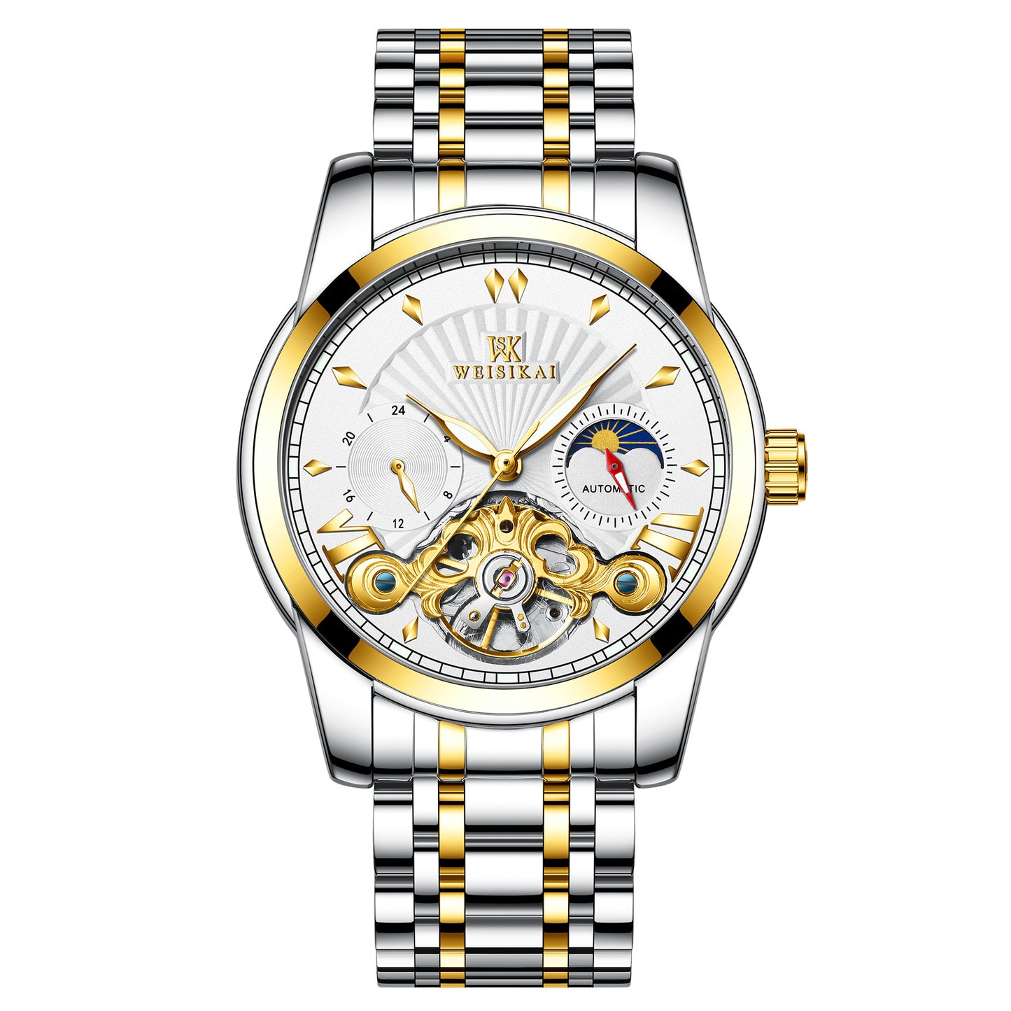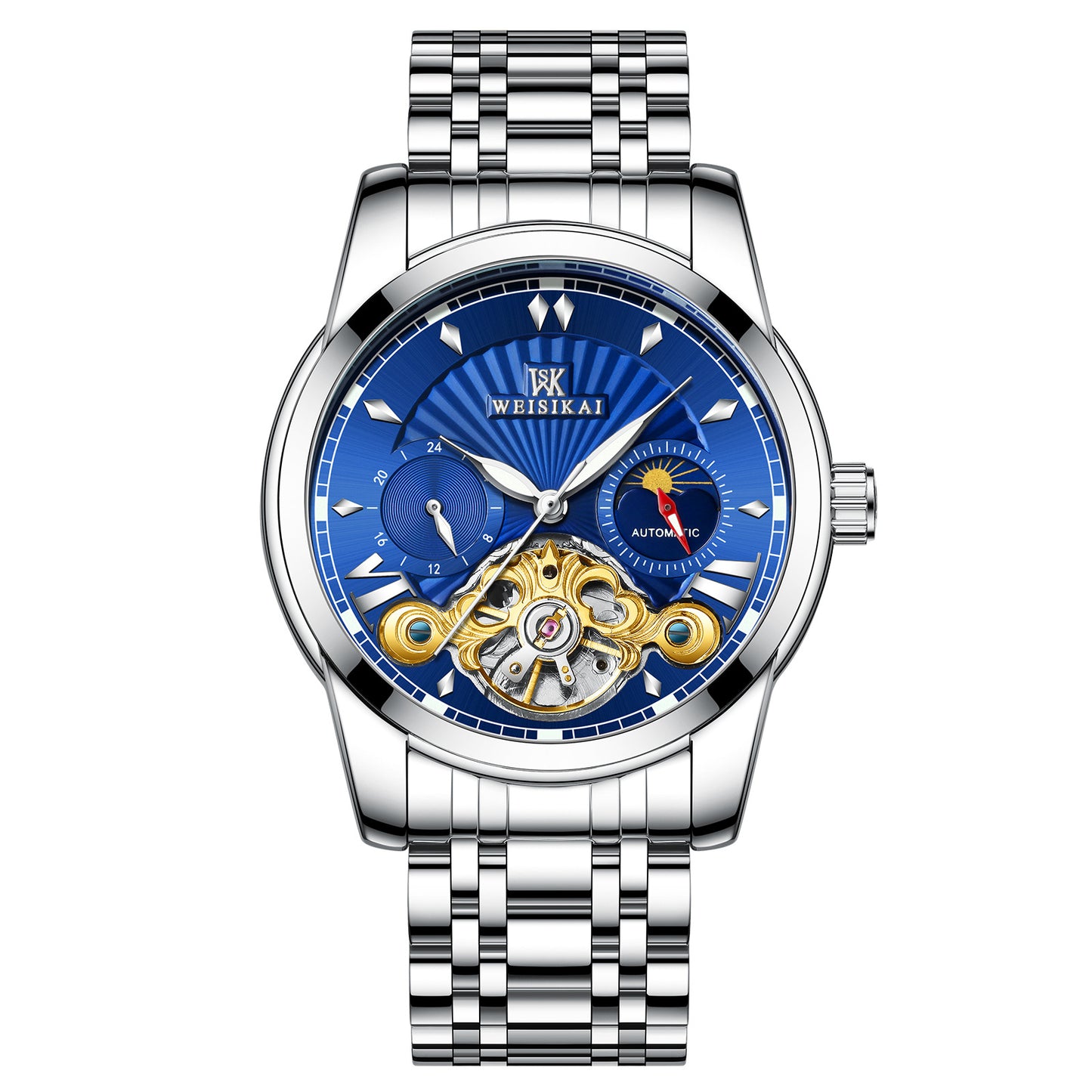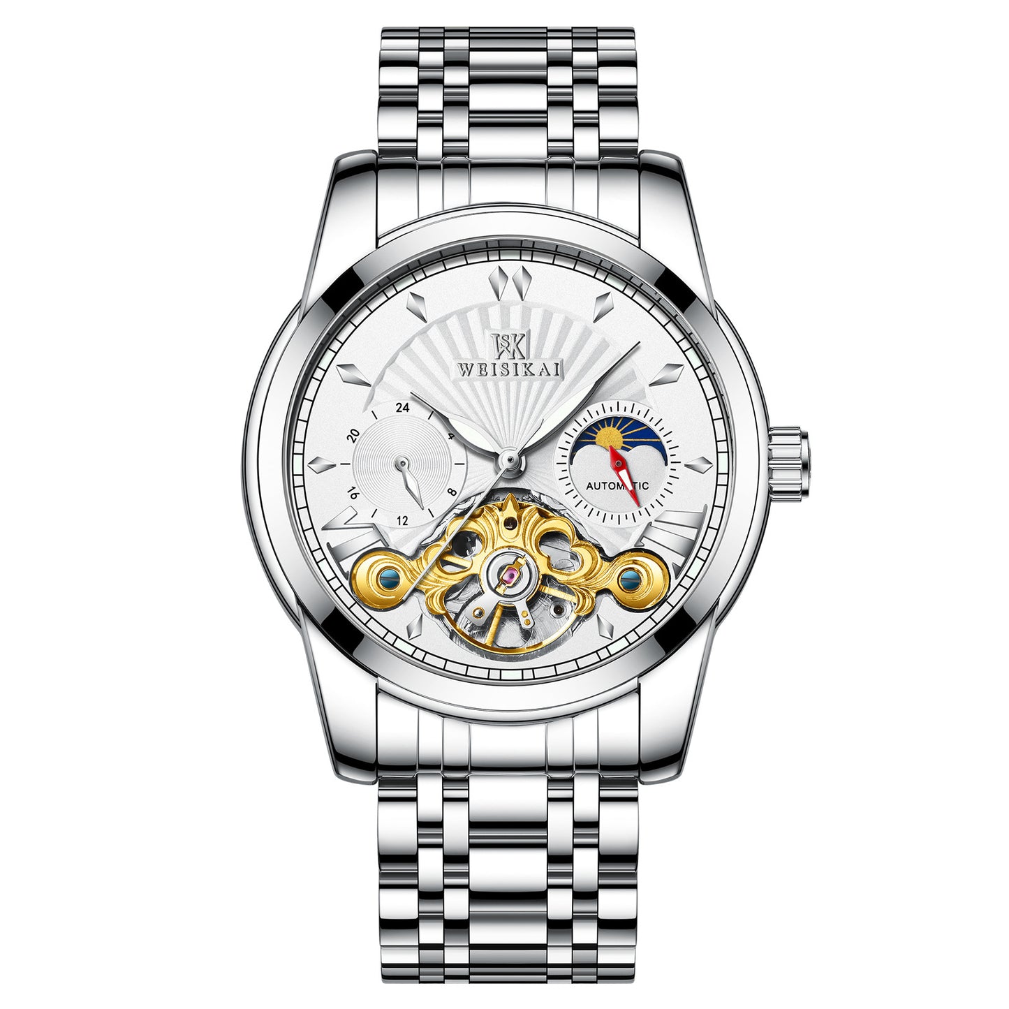 Introducing our premium waterproof flywheel automatic mechanical watch for men. This stylish timepiece is designed with special functions including luminous, touring wheel, and a 24-hour indication, making it a perfect accessory for any occasion.